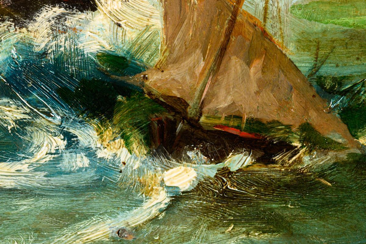 Undeutlich signiert: Stürmische Küste
