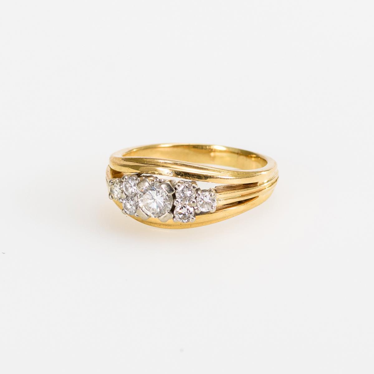 Gelbgold/Weißgold 585 gestempelt. Brillanten zus. ca. 0,45 ct. Ringgröße 60. 8,0 g.
