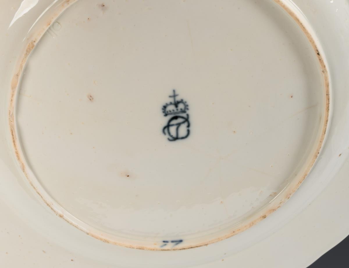 Polychrom bemalt, goldstaffiert. Ø 23 cm.