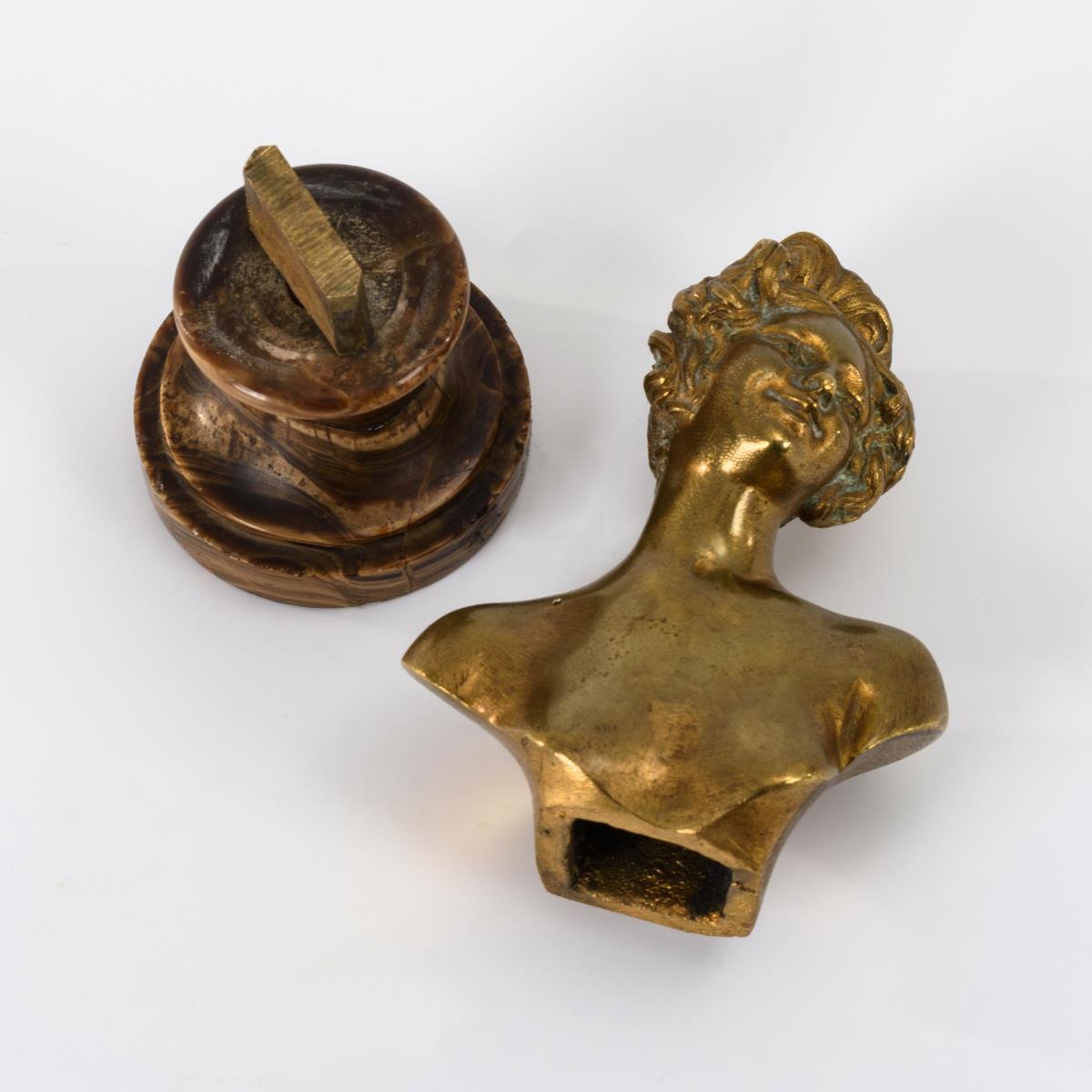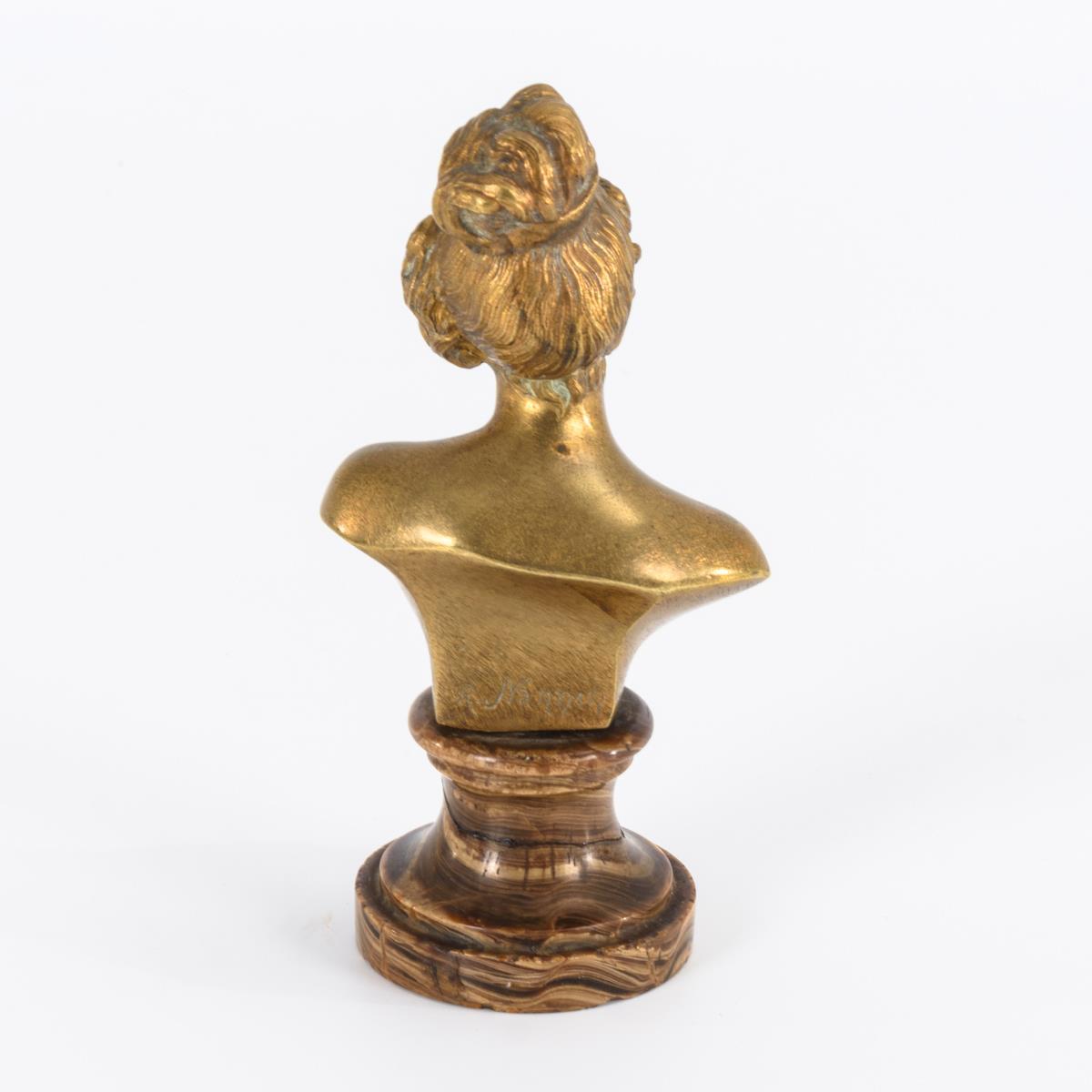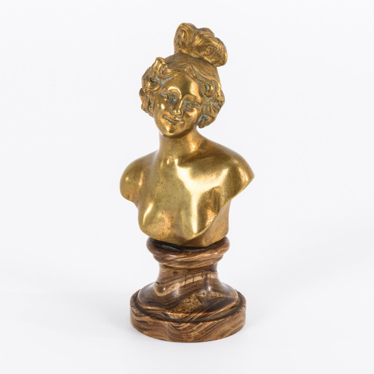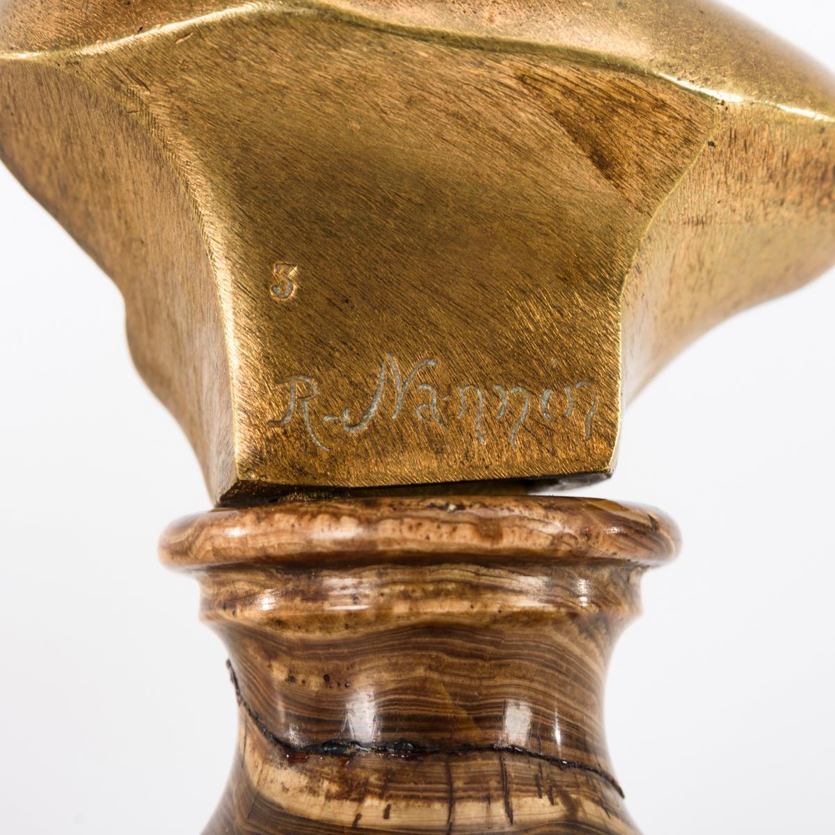 Goldfarbene Bronze, Sockel aus braunem Onyxmarmor. Italien. Bezeichnet "R-Nanin" sowie "Nr. 3". H 9,5 / 13 cm.