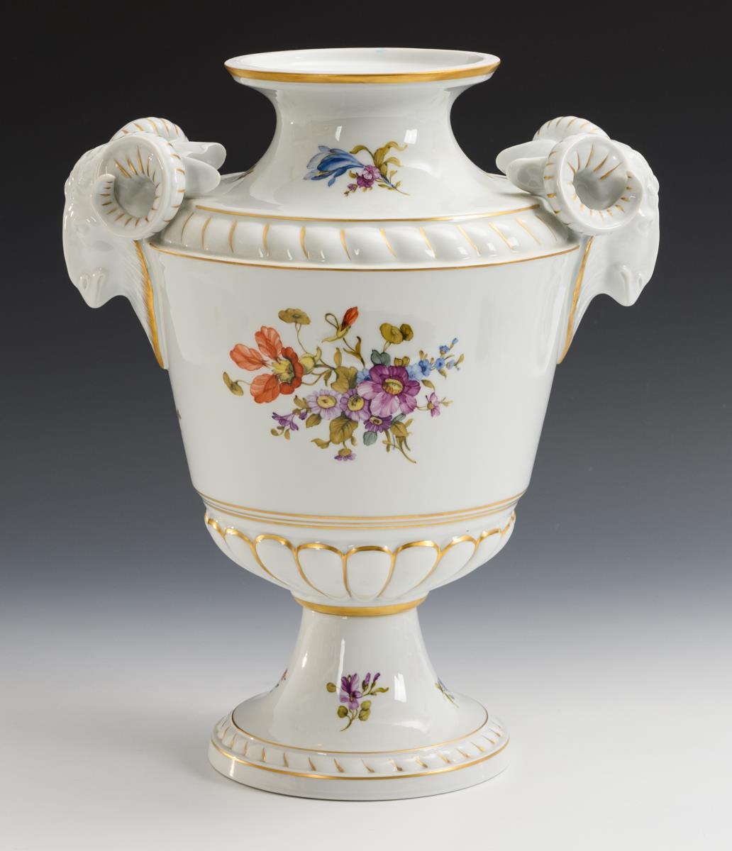 Widderkopfvase mit Blumenmalerei. Ludwigsburg.