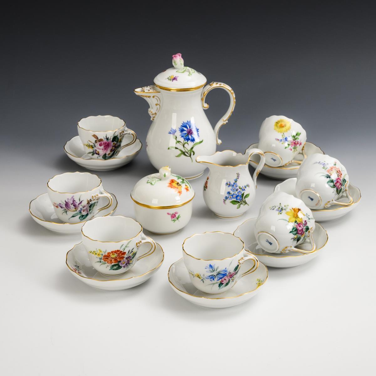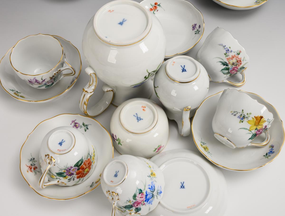 17 Teile eines Mokkaservice mit Blumenmalerei. Meissen.
