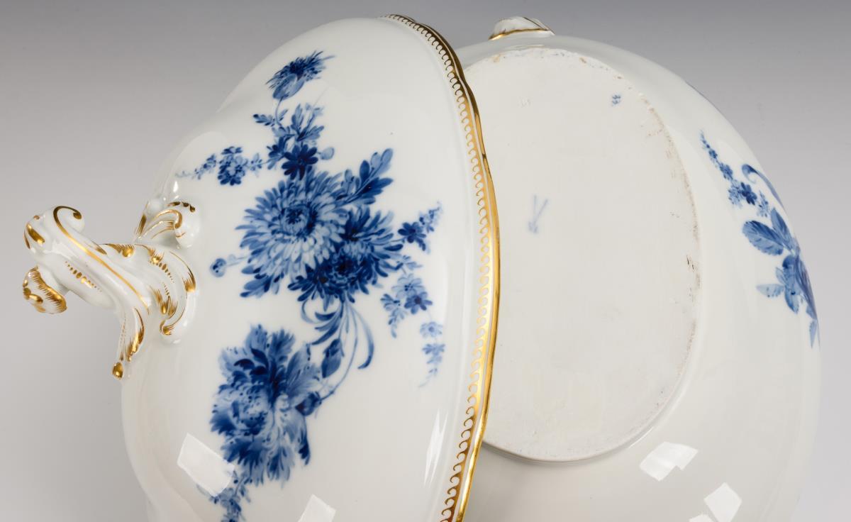 Unterglasurblaue Blumenmalerei, Goldstaffage. L 37,5 cm.