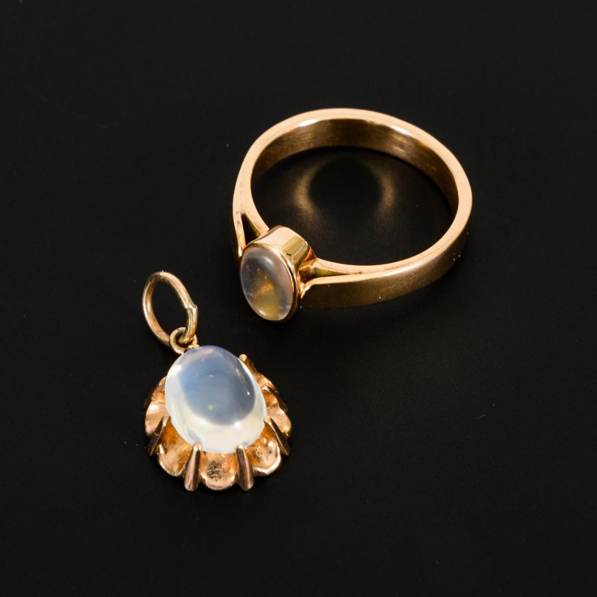 Ring und Anhänger mit Mondstein.