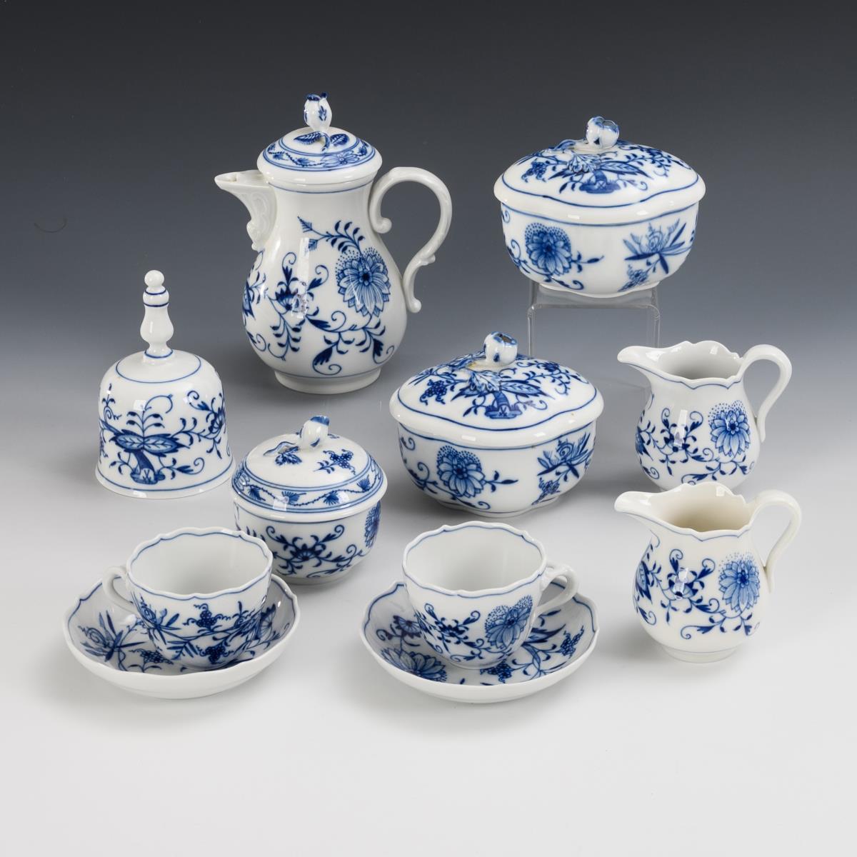 11 Teile Zwiebelmuster-Porzellan. Meissen.