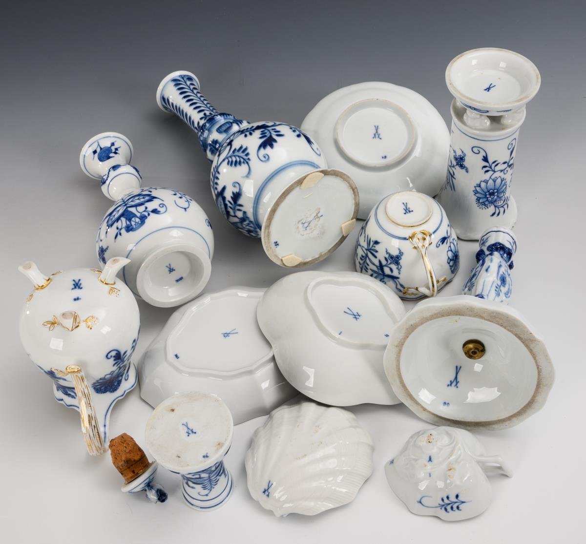 12 Teile Zwiebelmuster-Porzellan. Meissen.