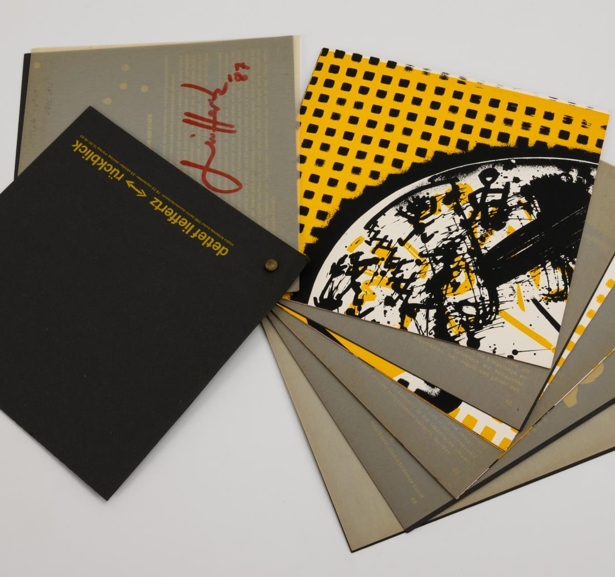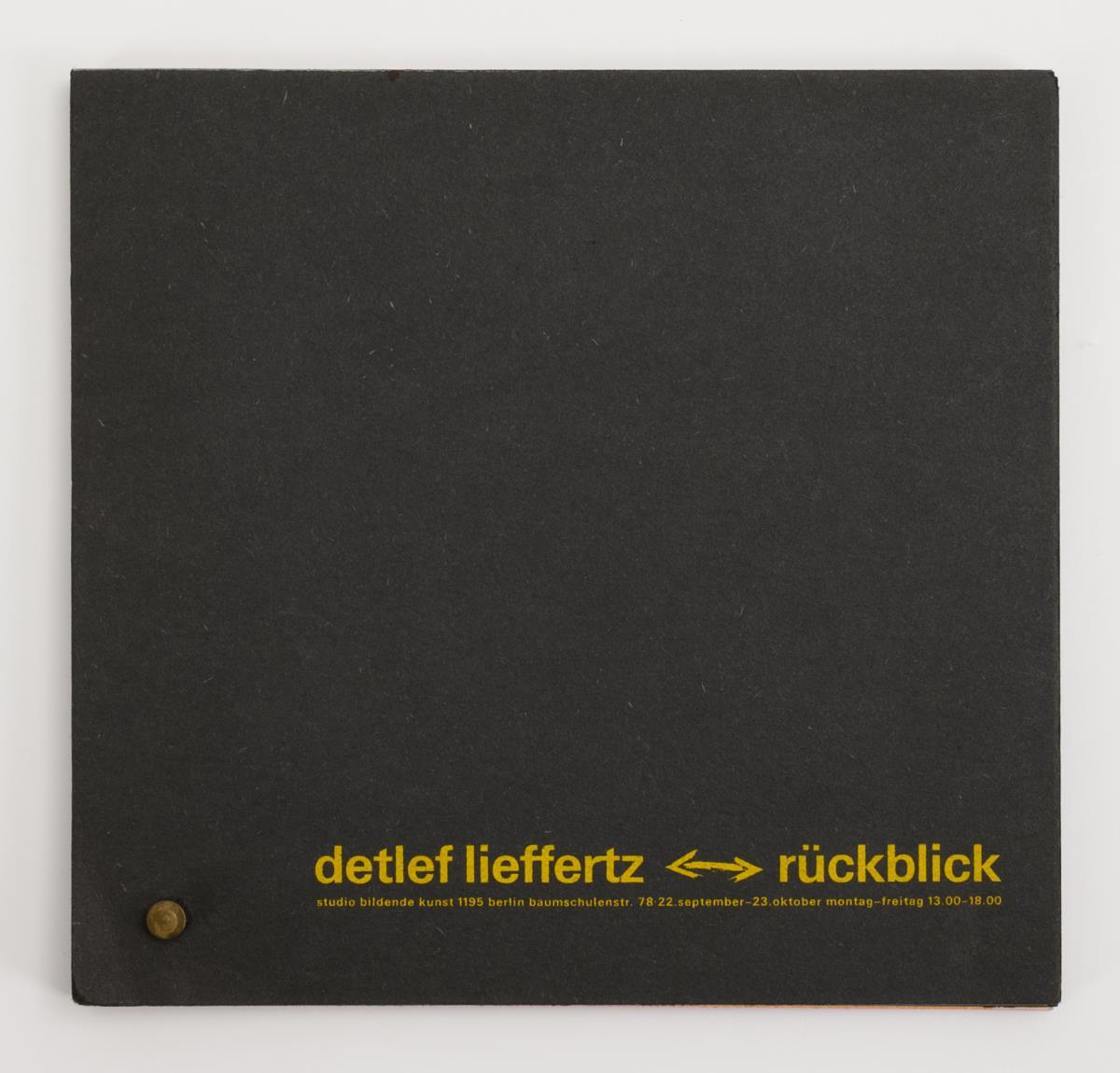 Seltener Katalog anlässlich der Ausstellung "Detlef Lieffertz - Werke in Acryl und zum Anfassen" im Studio Bildende Kunst Berlin, September - Oktober 1987. Der Katalog kann an einer Messingschraube in Einzelteile gelöst und zu einem Gesamtkunstwerk zusammengesetzt werden. Ecken minimal bestoßen.