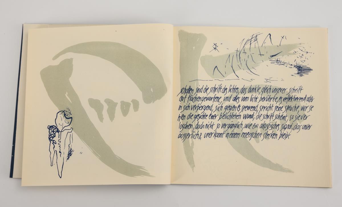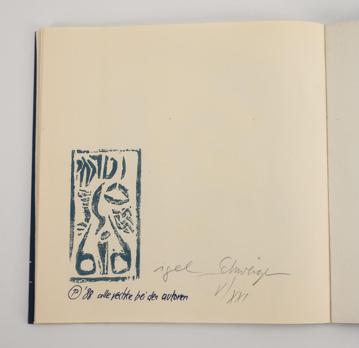 Seltenes Künstlerbuch mit Illustrationen von Detlef Schweiger und Texten von Bernd Igel; in blauem Paperback-Einband.