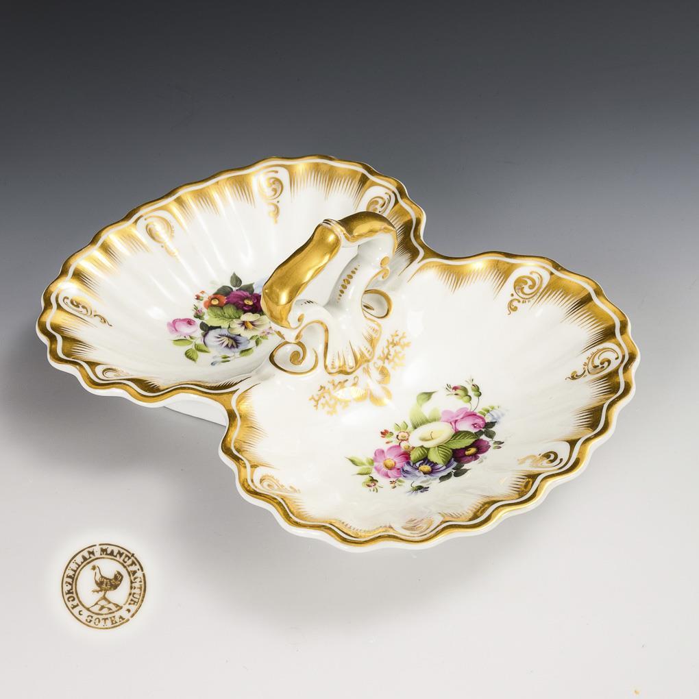 Polychrom bemalt, goldstaffiert. L 31 cm.