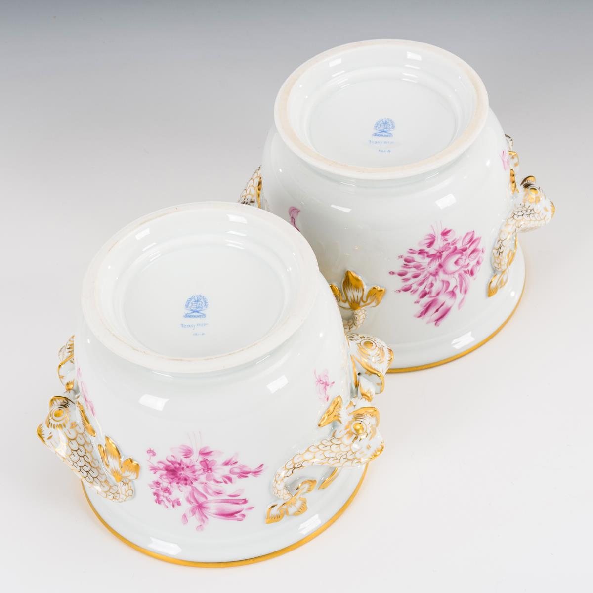 Zylindrische Gefäße mit konischem Stand und je zwei Delfinhandhaben.
