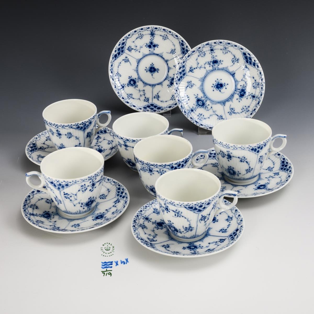 6 Tassen mit Untertassen "Musselmalet". Royal Copenhagen.