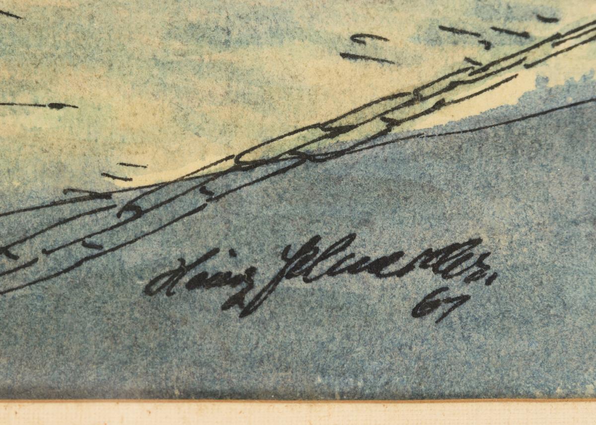 Aquarellierte Tuschezeichnung. Rechts unten undeutlich signiert, auf Passepartout betitelt. Datiert: (19)61.