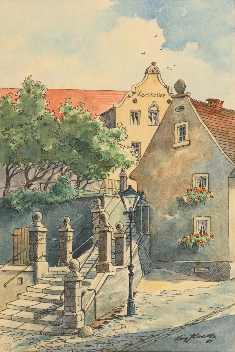 Undeutlich signiert: "Bernburg - Schenktreppe"