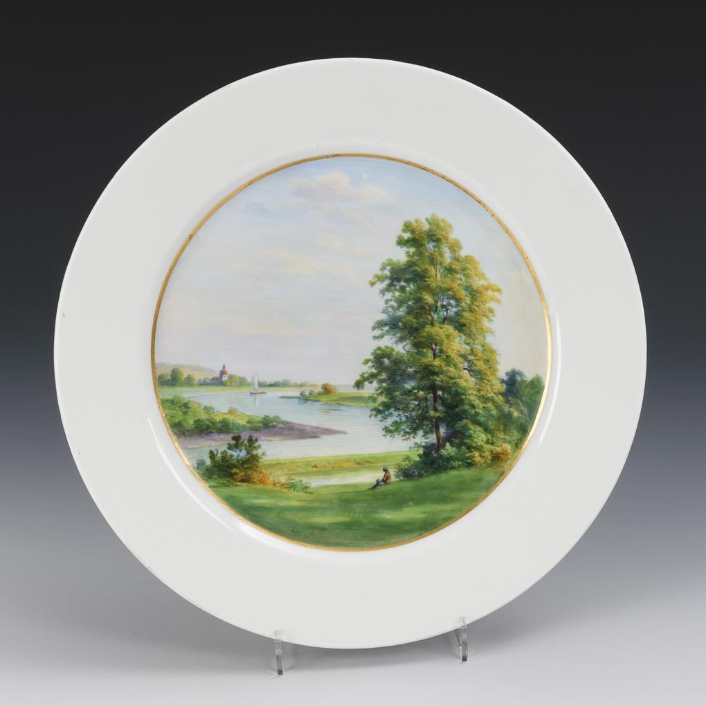 Jugendstil-Teller mit Landschaftsmalerei. Meissen.
