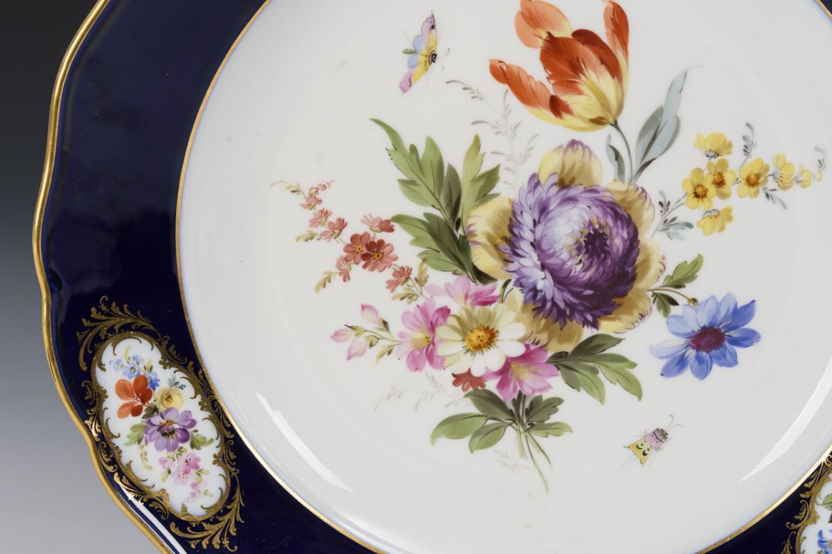 Teller mit Kobaltfahne und Blumenmalerei. Meissen.