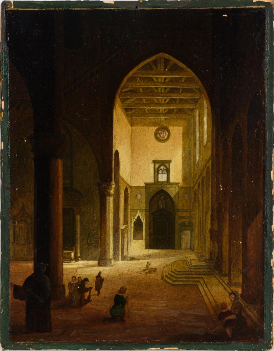 Architekturmaler 19. Jh.: Kircheninterieur mit Staffage