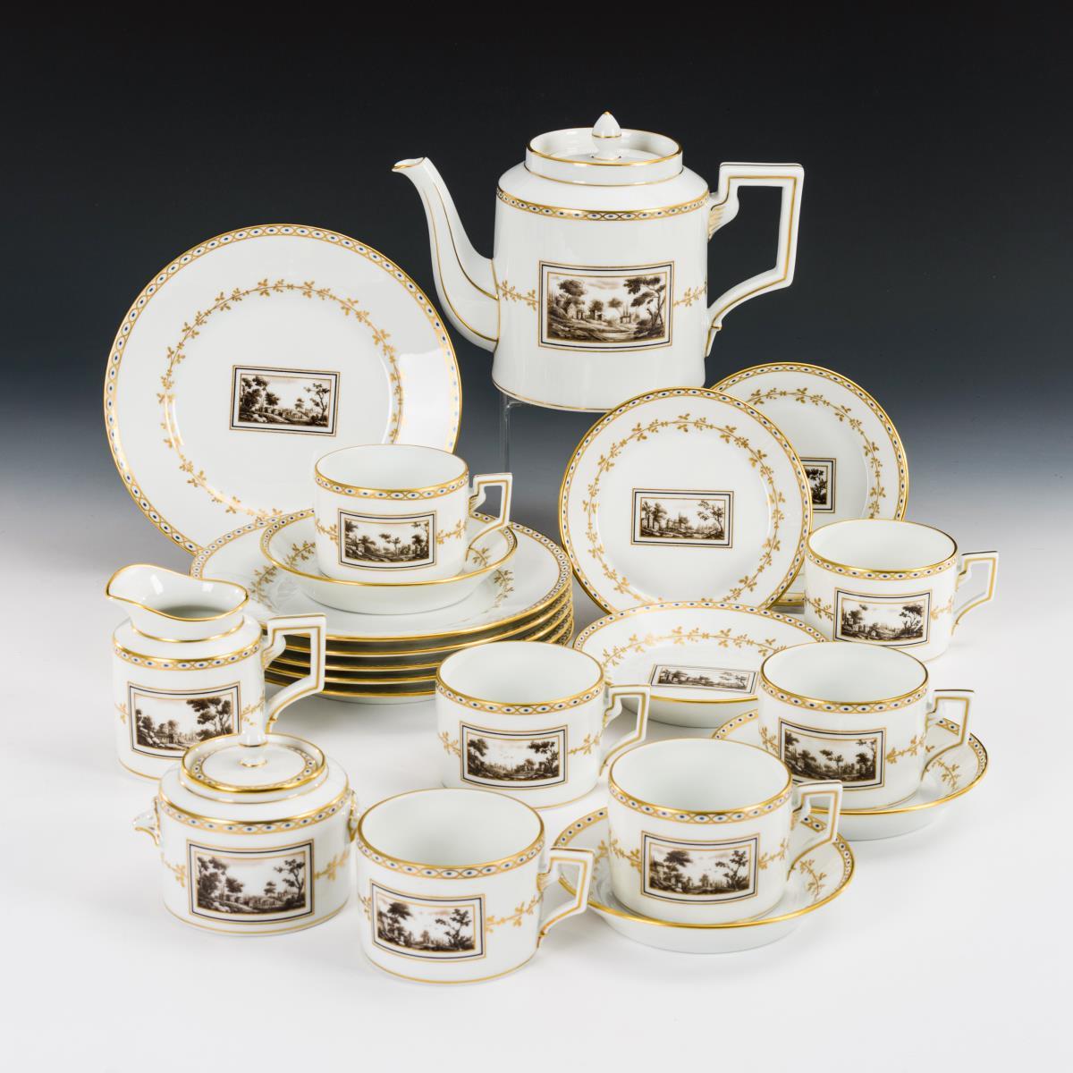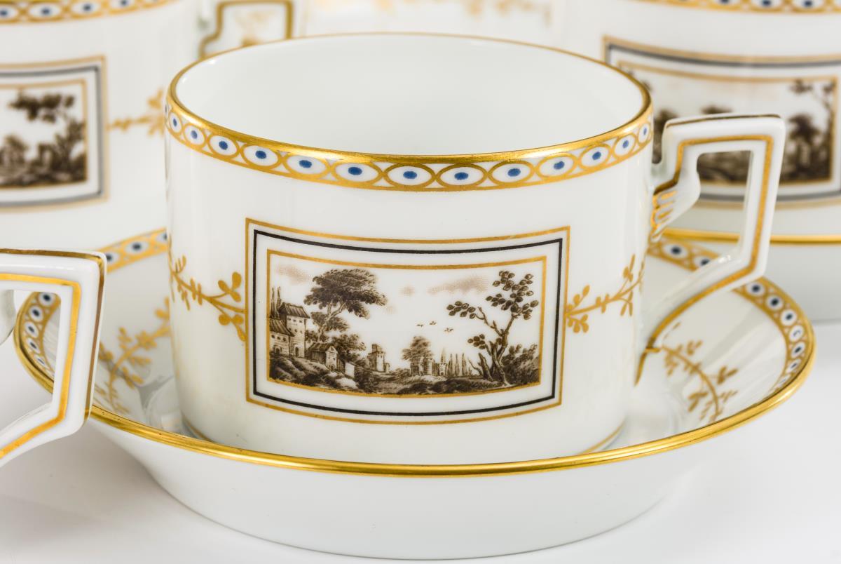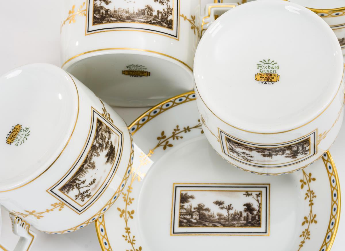 Kaffeeservice mit Landschaftsdekor. Ginori.