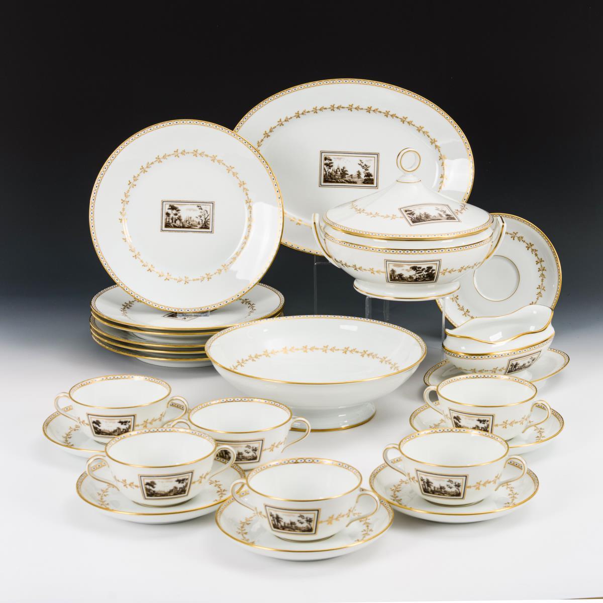 Speiseservice mit Landschaftsdekor. Ginori.