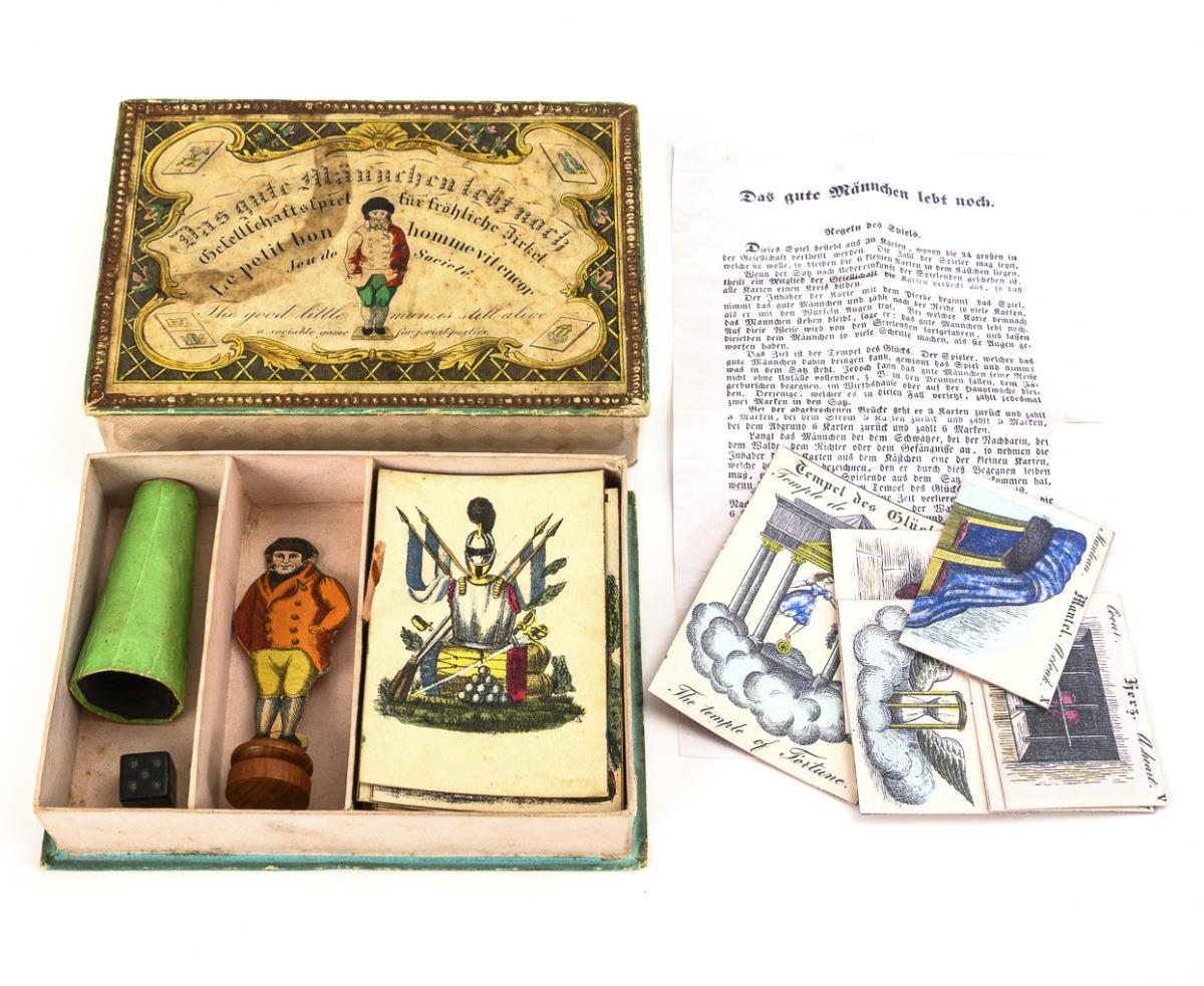 Sie befinden sich hier: Startseite Kategorien Spielzeug Frühes Nürnberger Würfel- und Kartenspiel "Das gute Männchen lebt noch"