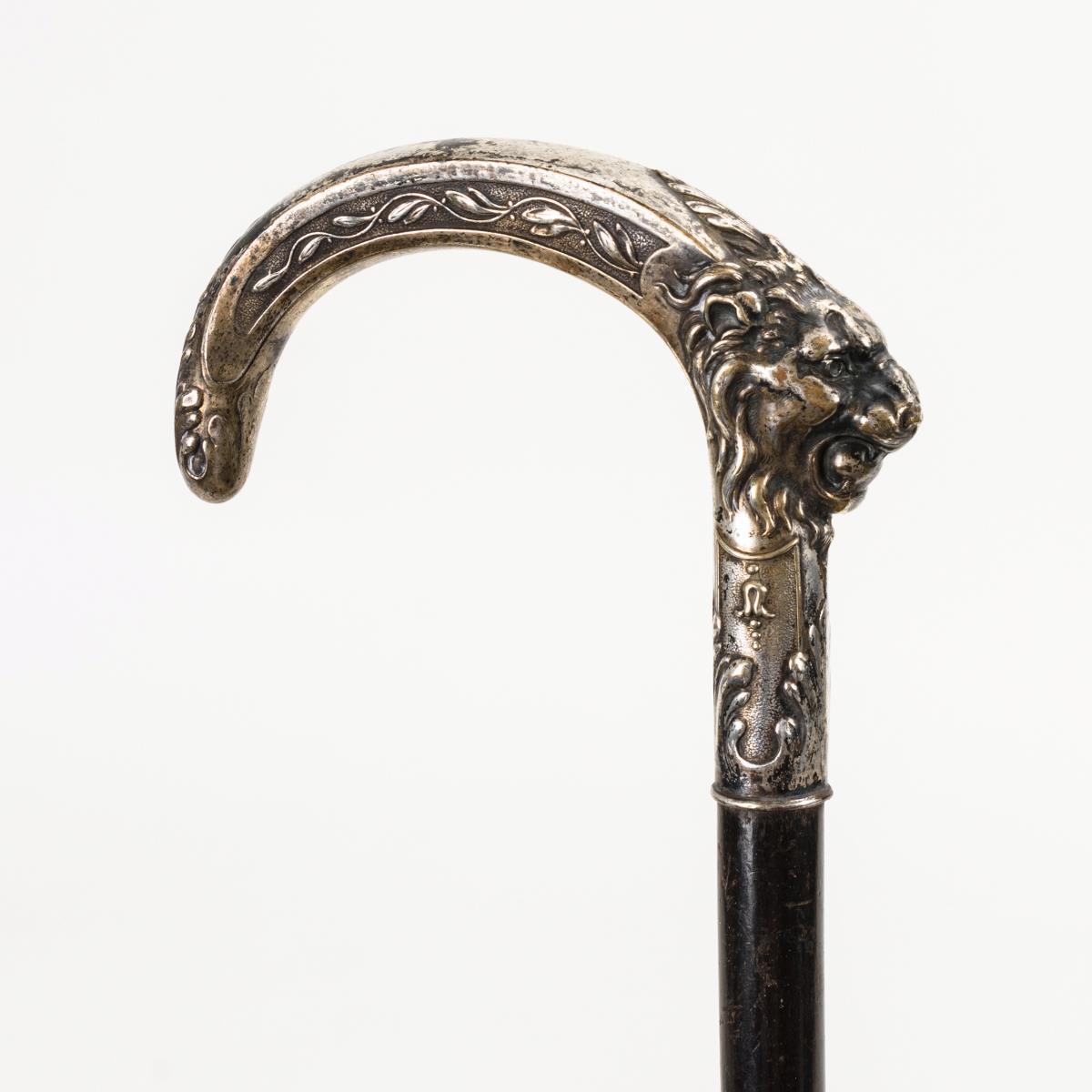 Versilbertes Metall, ursprünglich ebonisiertes Holz, Eisenzwinge. L 81 cm.