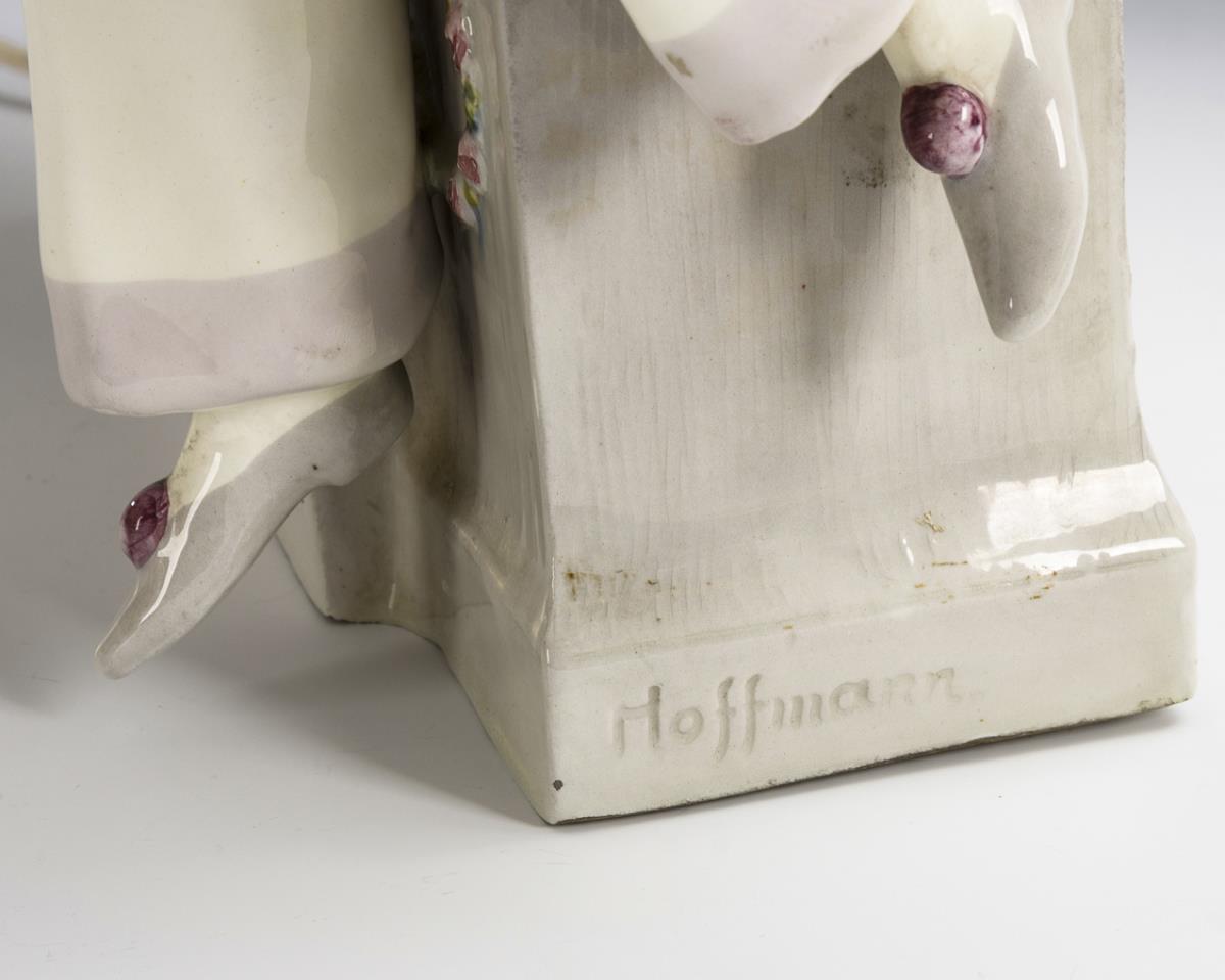 Tischlampe mit Keramik-Figuren: Harlekin und Colombine. Wiener Emailfarbenwerk Schauer & Co.
