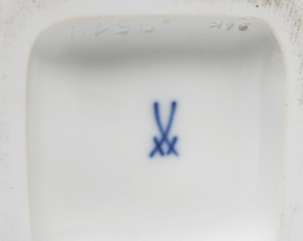 Modell von Johann Joachim Kaendler 1750. Farbig bemalt, gold staffiert. Ritzmarke, Pressmarke, Malermarke, Schwertermarke. Degenspitze abgebrochen, original vorhanden, Stab geklebt.