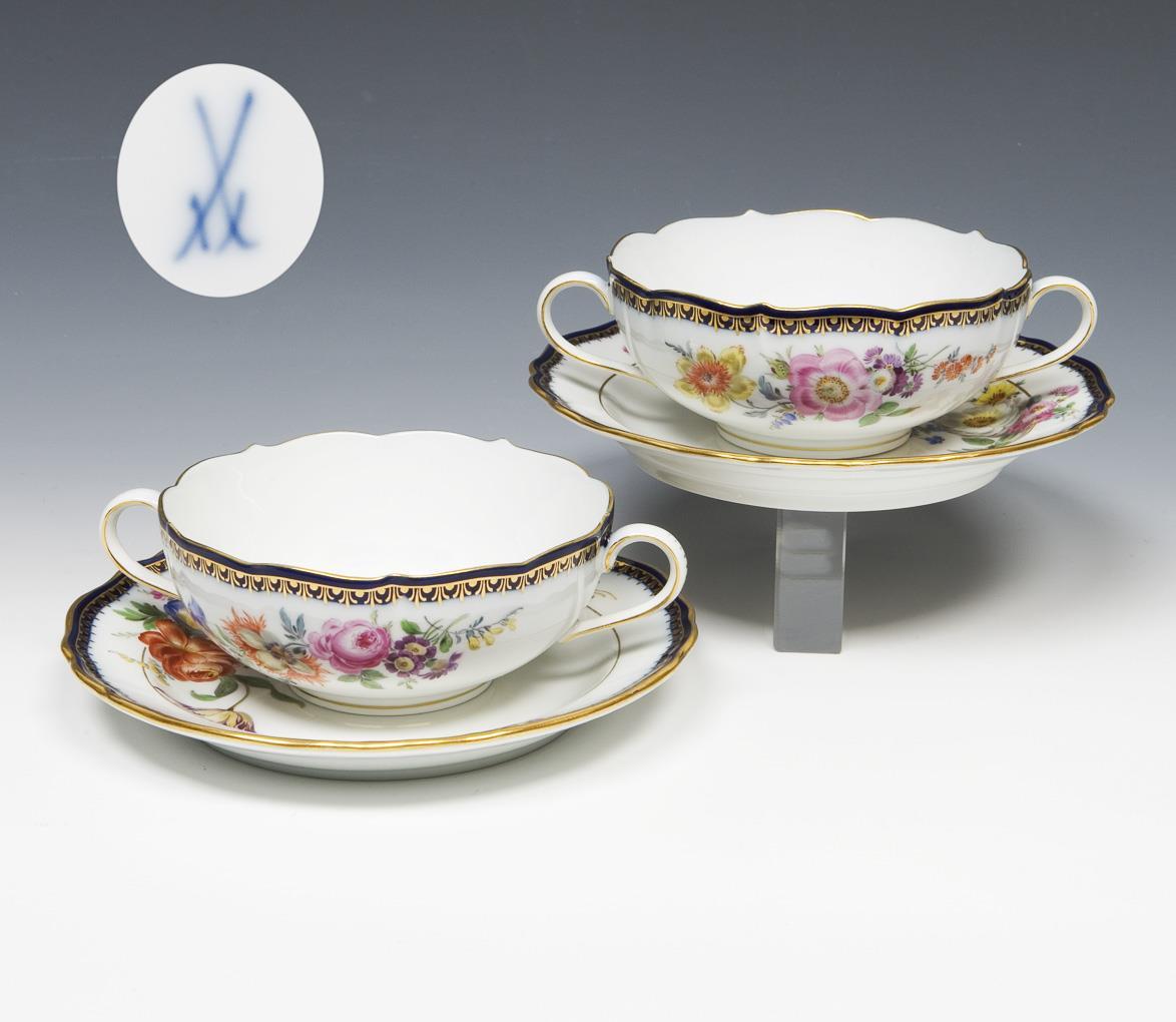 Paar Suppentassen, Paar Unterteller. Meissen.