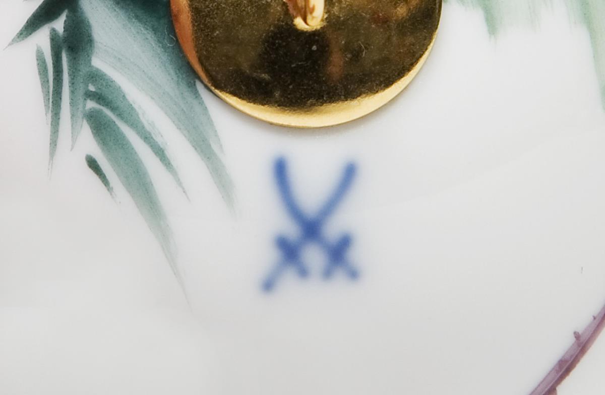 Dekor-Nr. 61C023, farbig bemalt, Dekor "Waldflora mit Insekten", Messing-Montierungen, Schwertermarken.