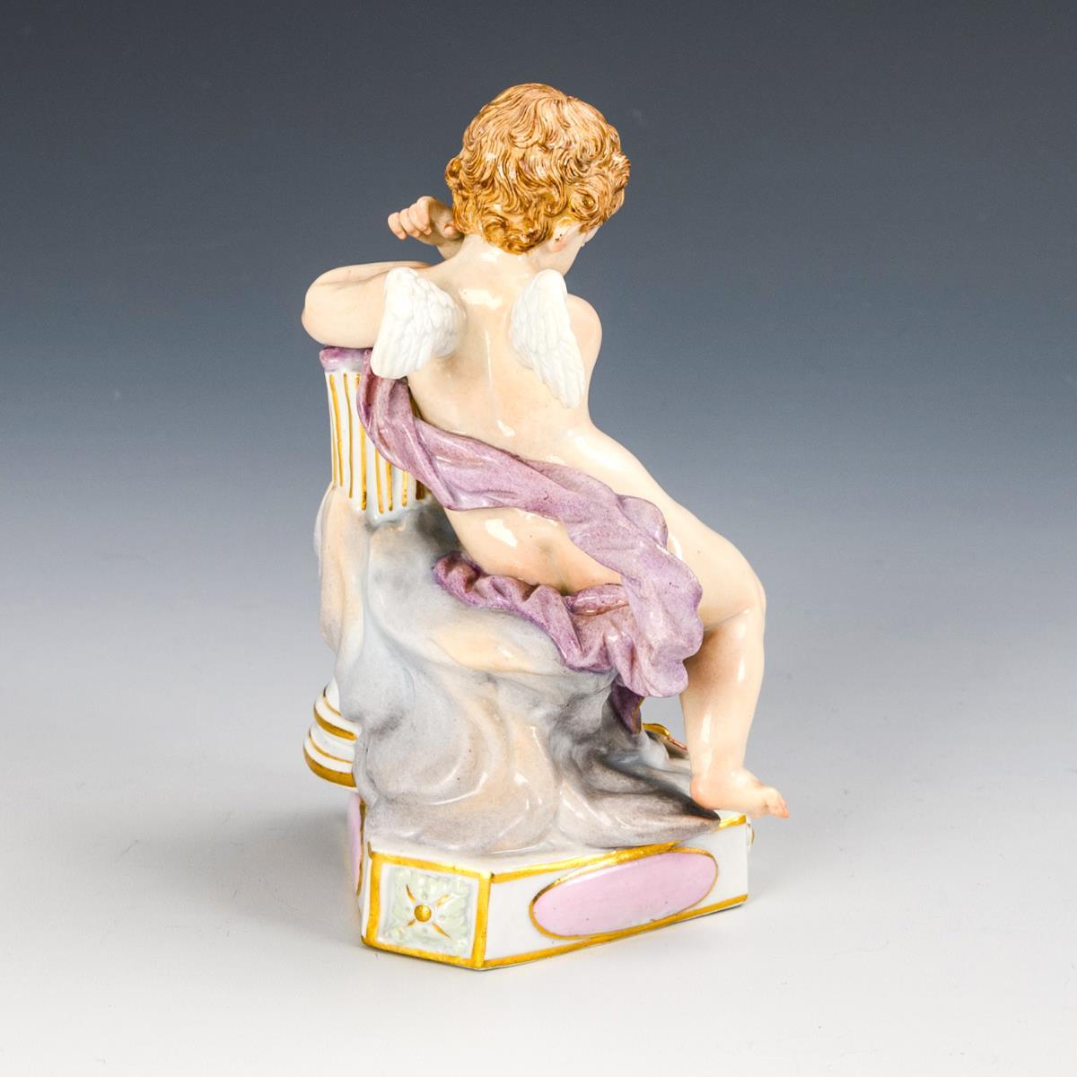 Auf einen Säulenstumpf gestützt sitzender Amorknabe. 1 Zeh und Pfeile bestoßen.