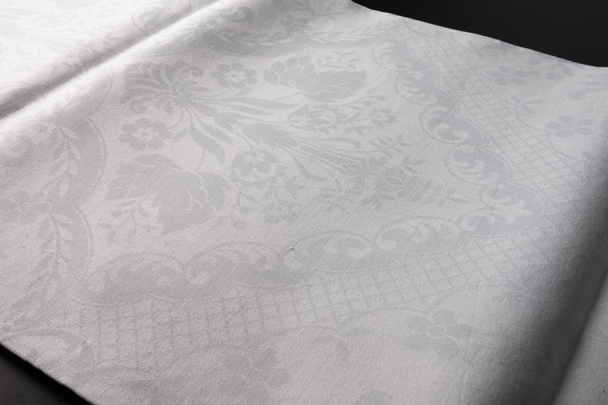 Leinendamast/Halbleinendamast. 238 x 127/99 x 95/230 x 128 cm.