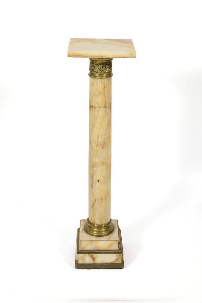 Heller und rotbrauner Onyx-Marmor. H 104 cm, Deckplatte 27x 27 cm.