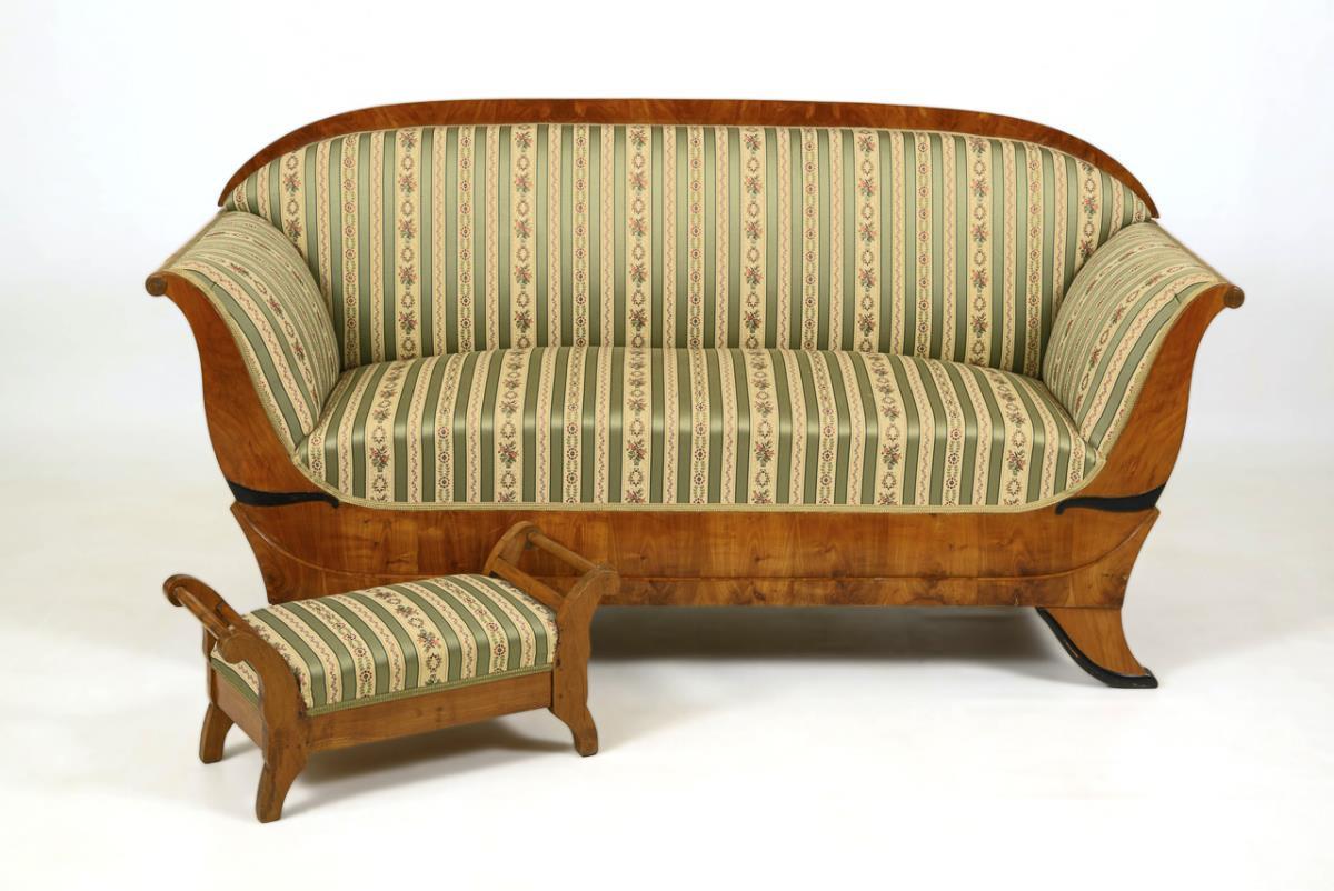Biedermeier-Polstersofa und Fußbank..