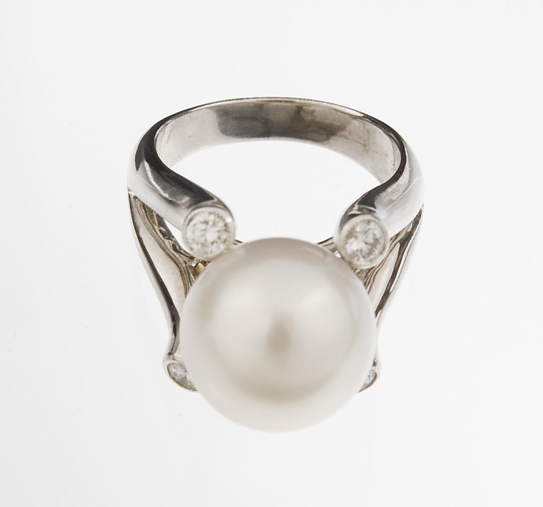 Moderner Perlen-Diamant-Ring.