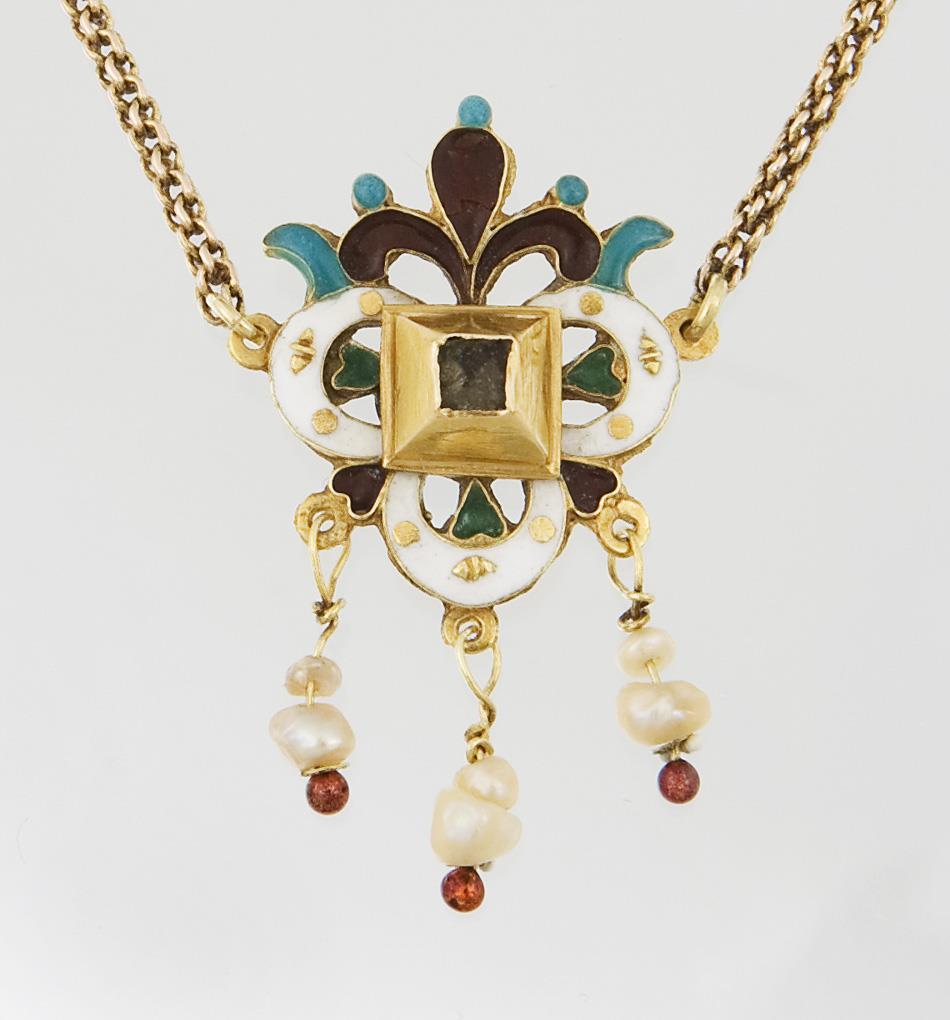 Renaissance-Gold-Email-Anhänger um 1600, Kette um 1850.