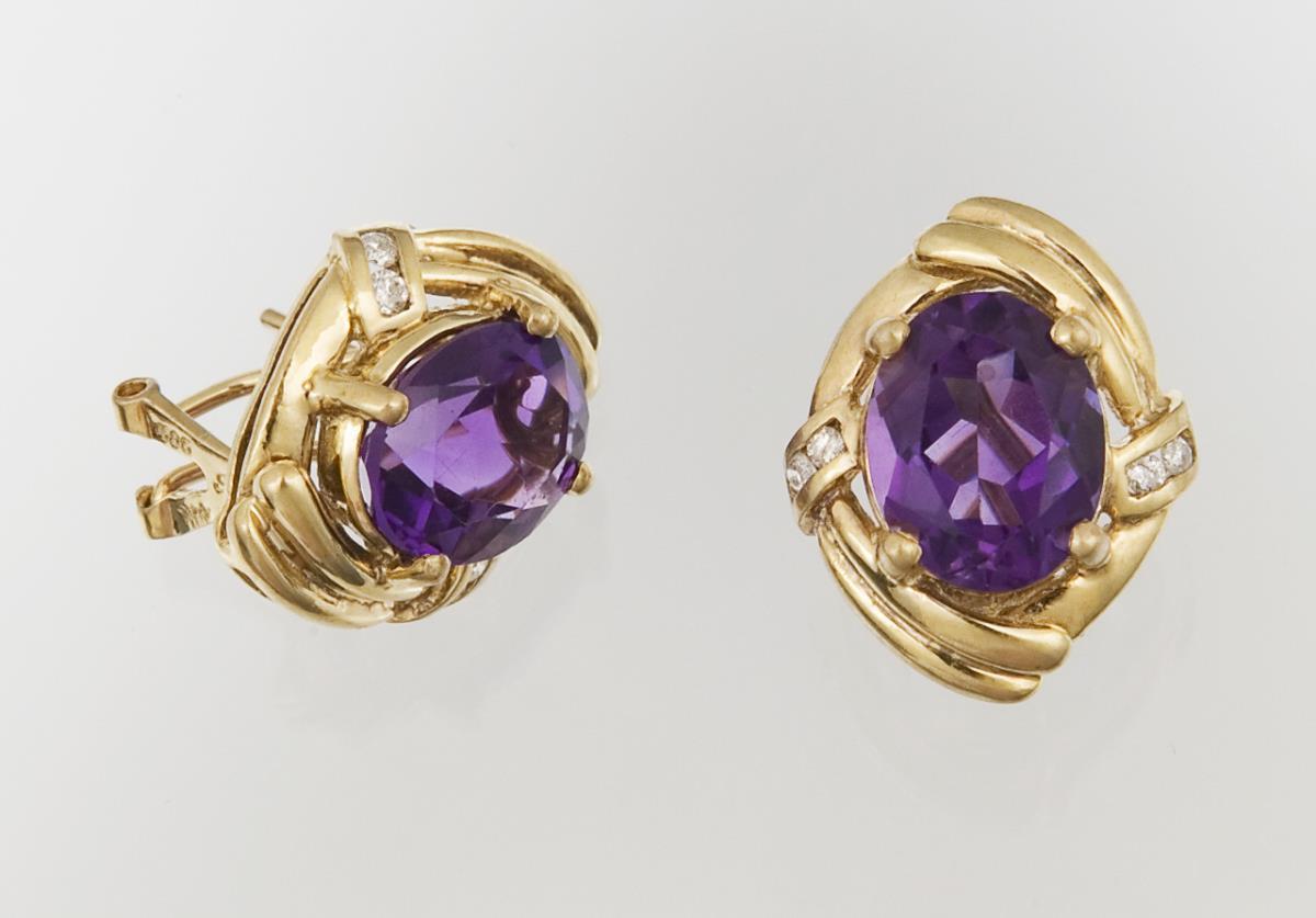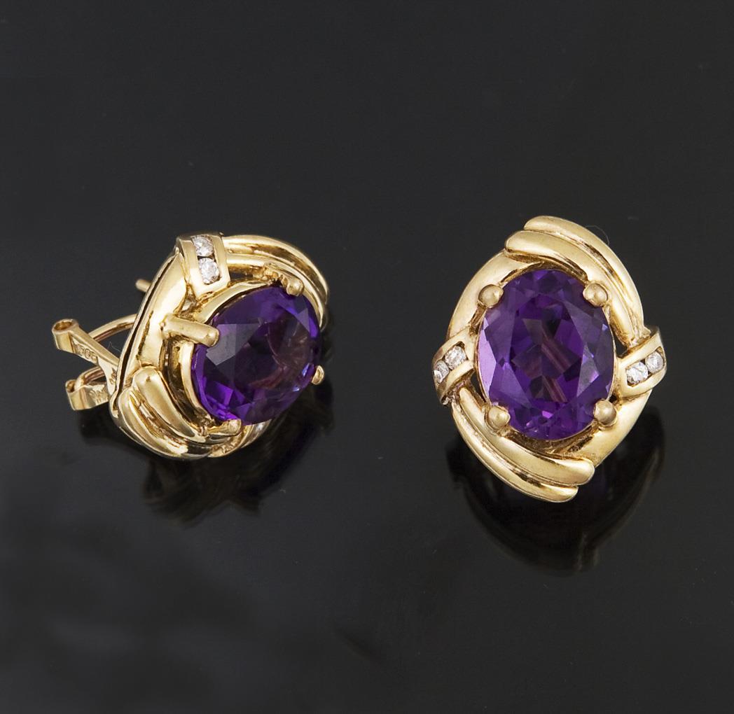 Paar Amethyst-Diamant-Ohrstecker.