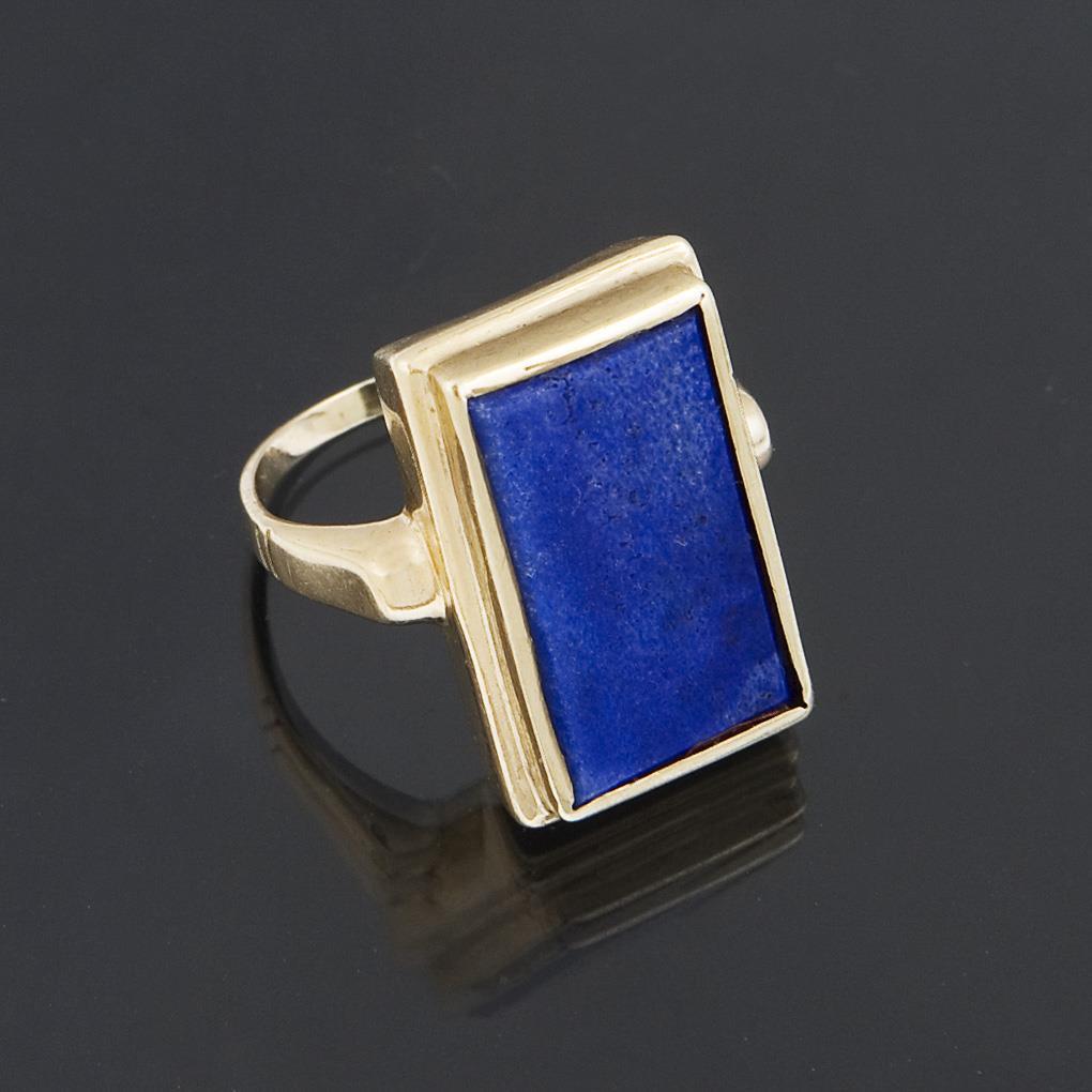 Rechteckige Lapislazuli-Tafel circa 16 x 9 mm in Zargenfassung, schmale Schiene, Punzen: Feingehalt.