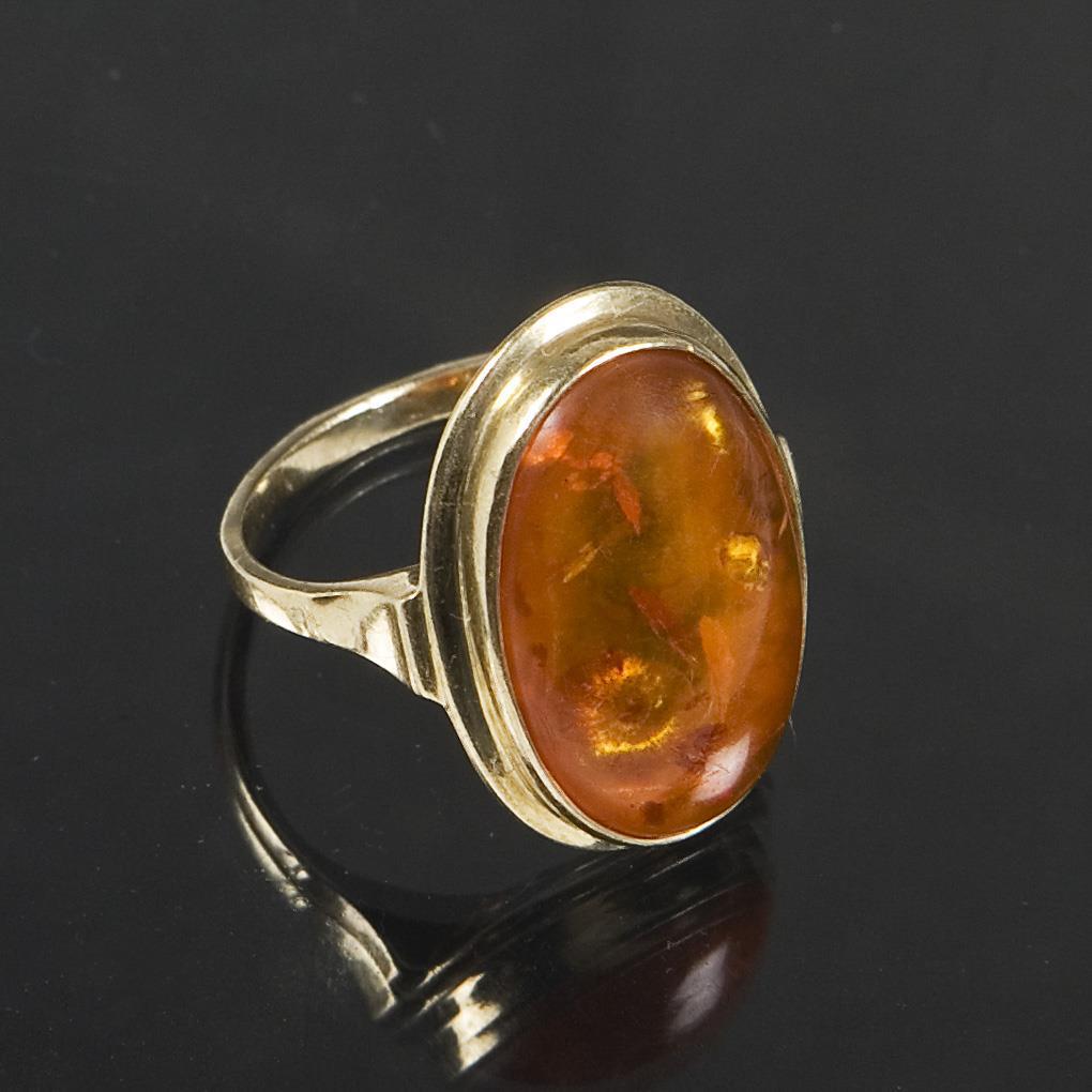 Ovaler Bernstein-Cabochon circa 18 x 12 mm in Zargenfassung, schmale Schiene, Punzen: Feingehalt.
