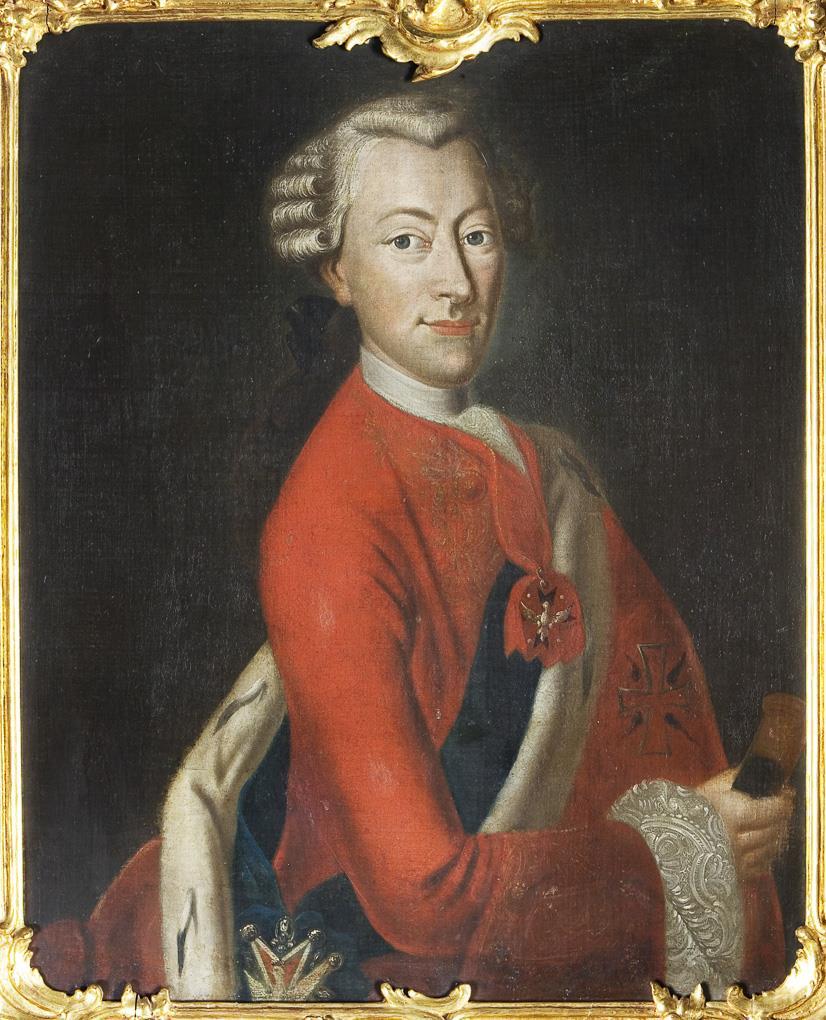 Porträt mit dem von seinem Vater Ernst August I. von Sachen-Weimar-Eisenach 1732 gestifteten Hausorden vom Weißen Falken (die Ordensträger wurden in den Staatshandbüchern aufgeführt) und dem polnischen Orden vom Weißen Adler. Prunkvoller Goldrahmen aus der Zeit.