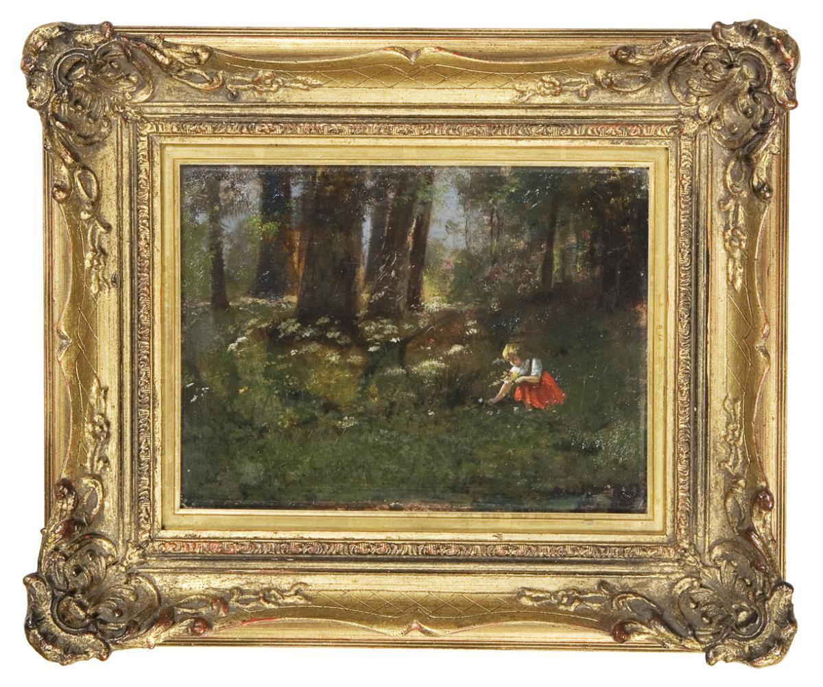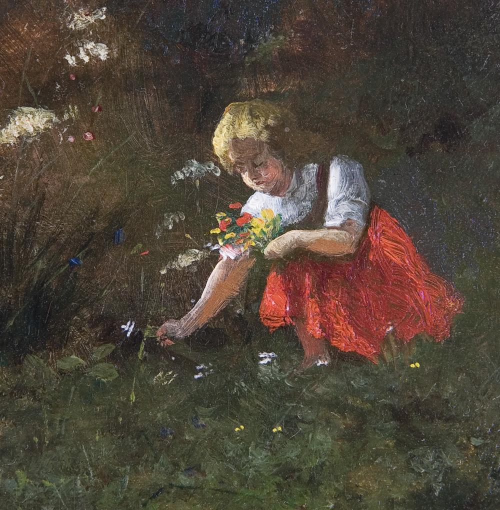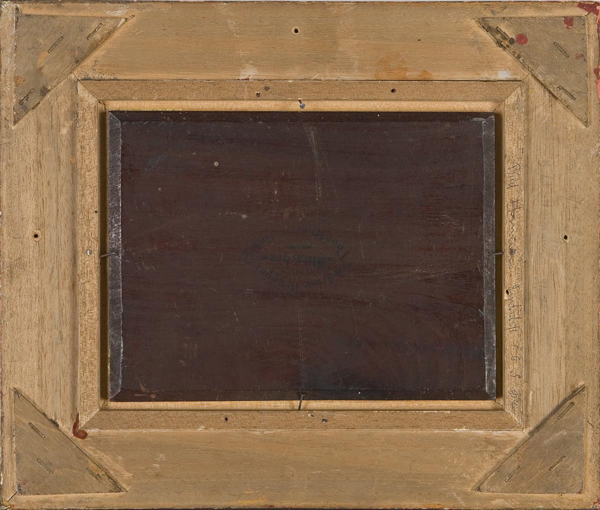 Kleinformatige, Ruhe und Frieden ausstrahlende Genreszene. Rückseitig Münchner Stempel. Vergoldeter Stuckrahmen.