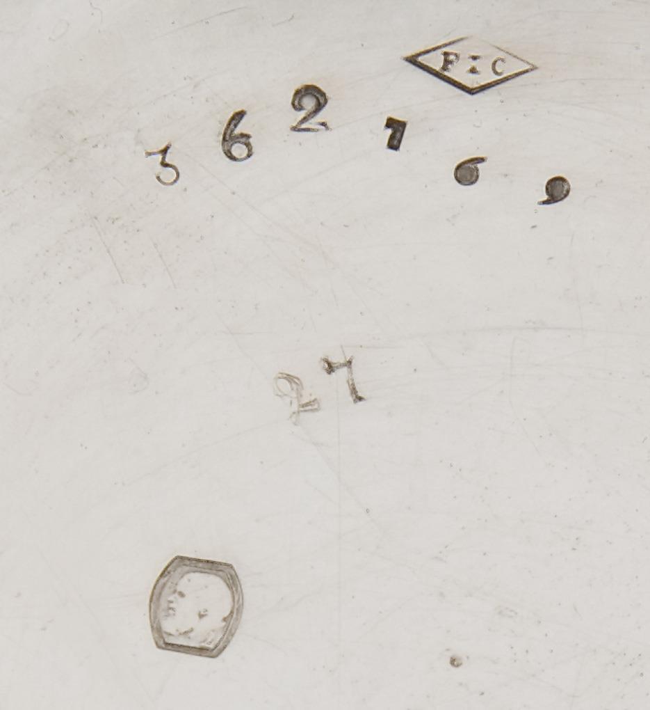 Guillochiertes Gehäuse mit französischer Feingehaltspunze (1819-1838). Metall-Innendeckel, vergoldete Vollplatine mit gebläuten Stahlschrauben und filigran durchbrochen gearbeitetem Kloben. Viertelstundenschlagwerk auf Tonfeder, Auslösen des Schlagwerkes durch Drücken des Pendants. Spindelgang über Kette und Schnecke. Weißes Emailzifferblatt, schwarze arabische Zahlen, Schlüsselaufzug. Im Kurzzeit-Test funktionstüchtig. Zifferblatt am Rand partiell defekt.