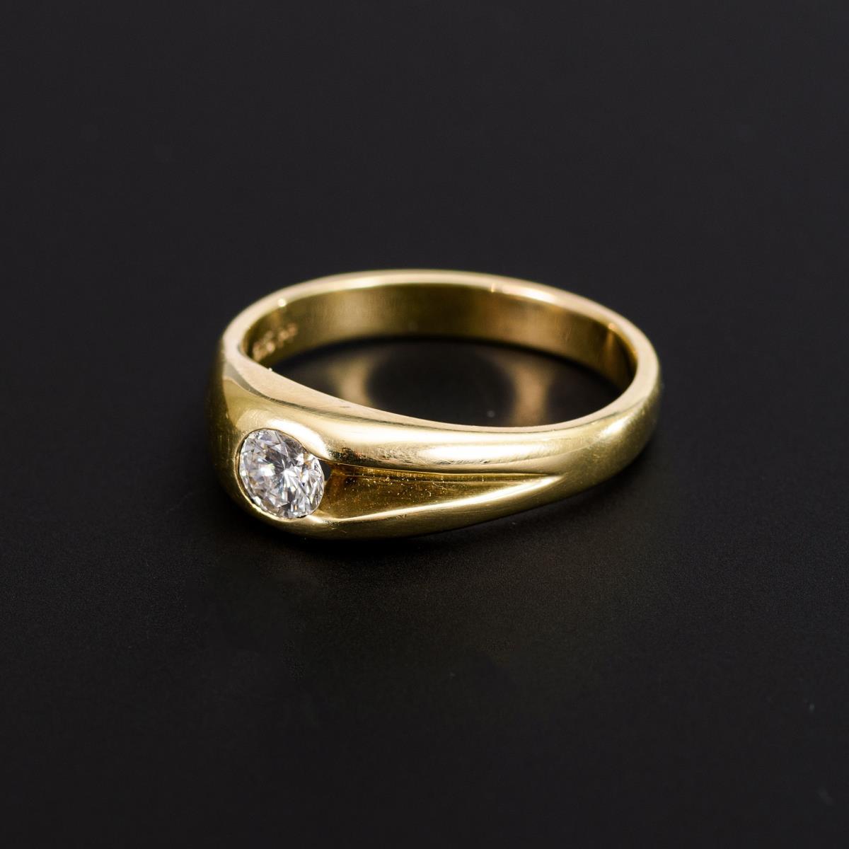 Gelbgold 585 gestempelt. Punze PF. Brillant ca. 0,50 ct/feines Weiß-Weiß/vvs-vs. Ringgröße 66. 8,4 g.