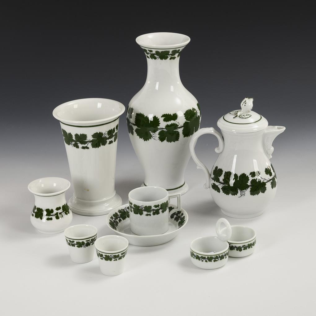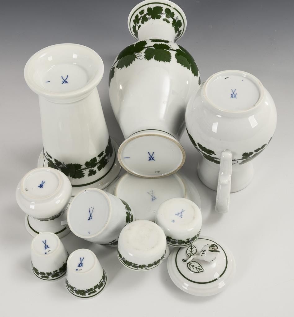 9 Teile Porzellan mit Weinlaubdekor. Meissen.