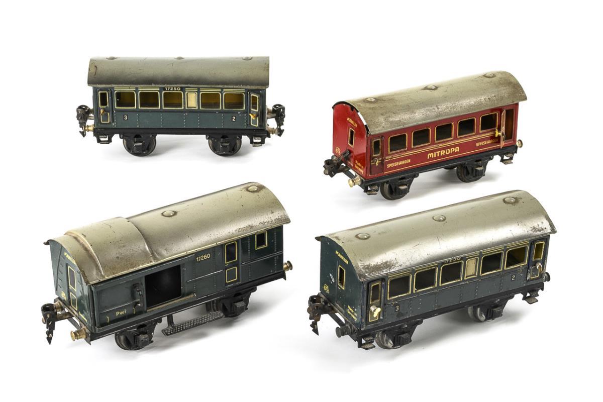4 Eisenbahn-Waggons. Märklin.