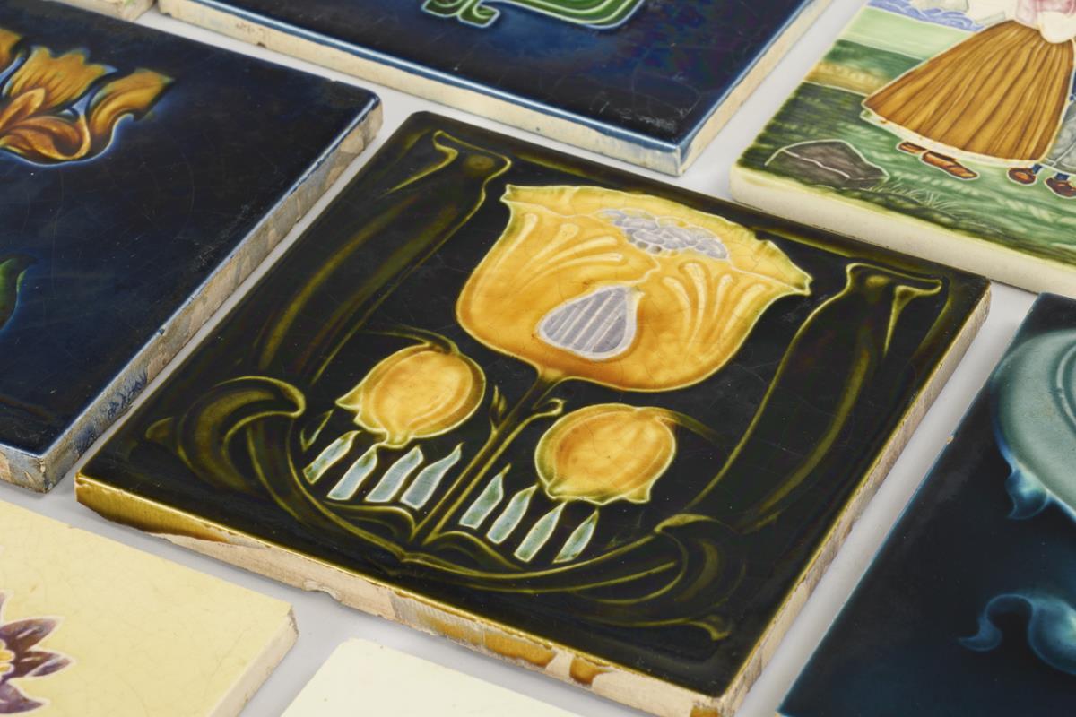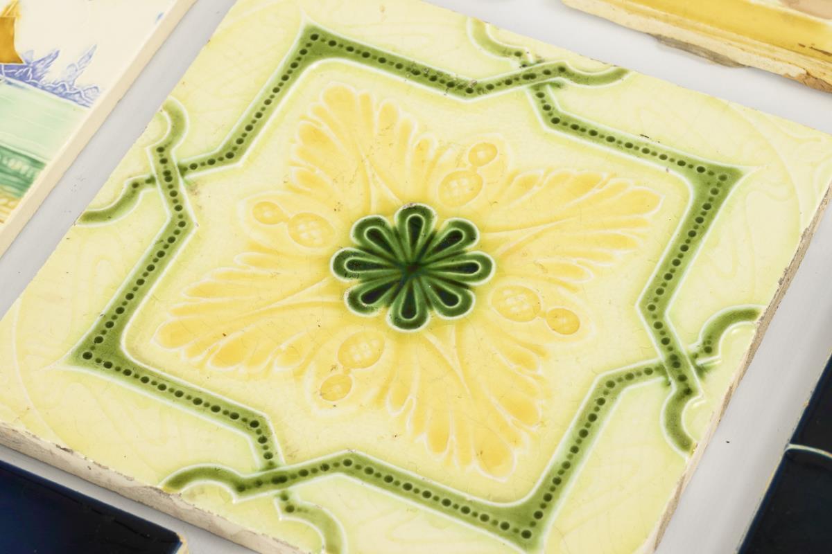Konvolut Jugendstil-Fliesen mit verschiedenen Dekoren.