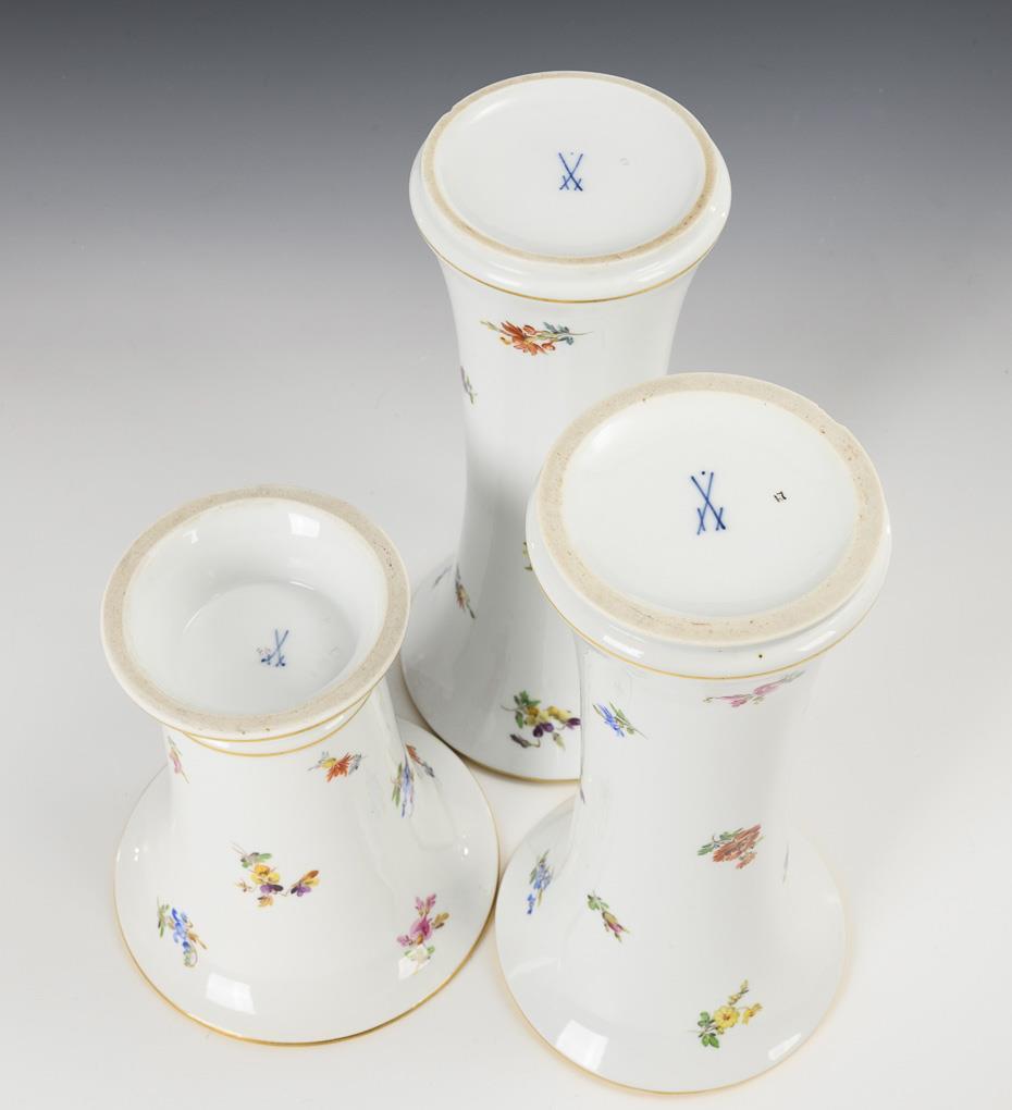 2 Flötenvasen und 1 Kratervase mit Streublümchenmalerei. Meissen.