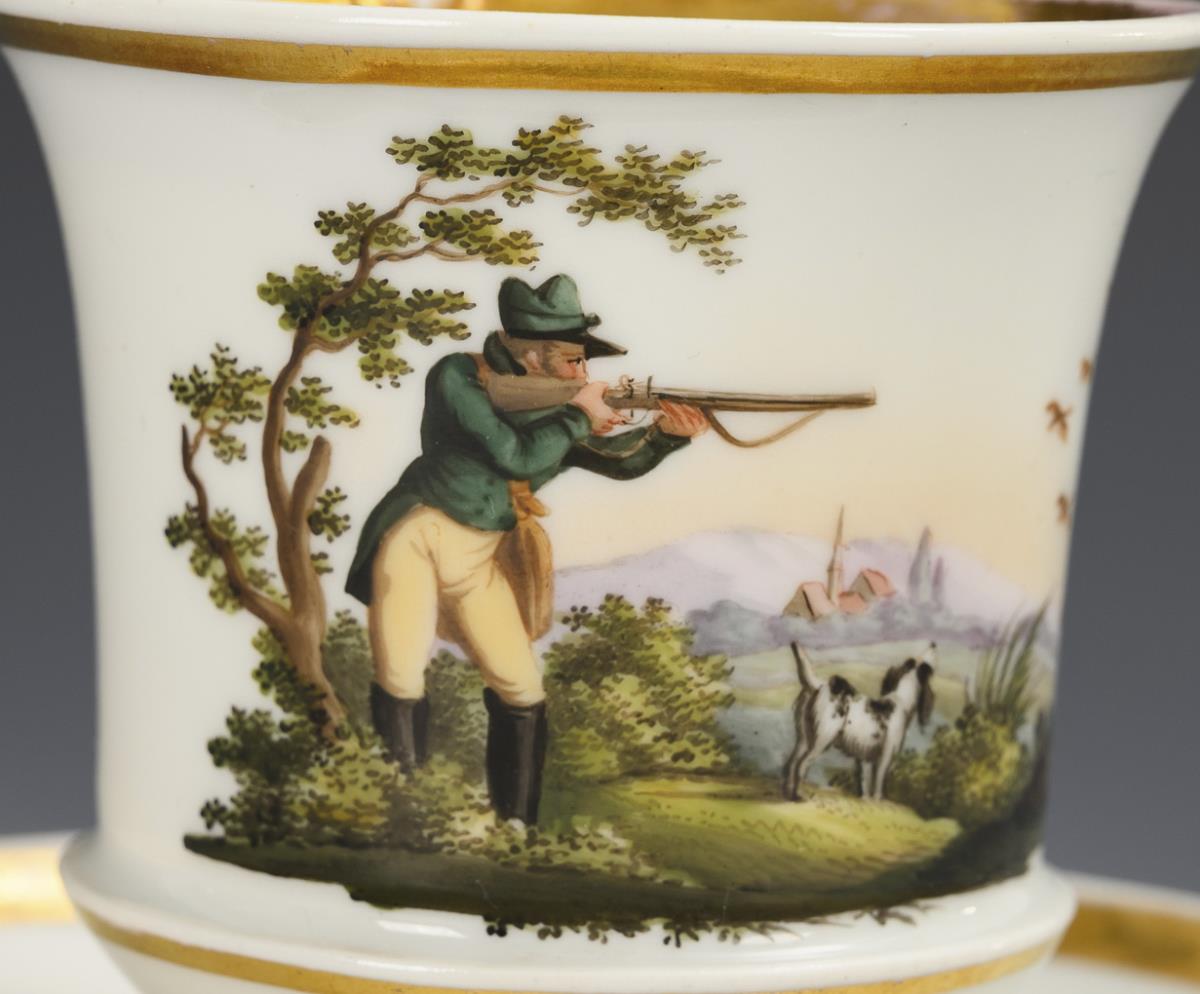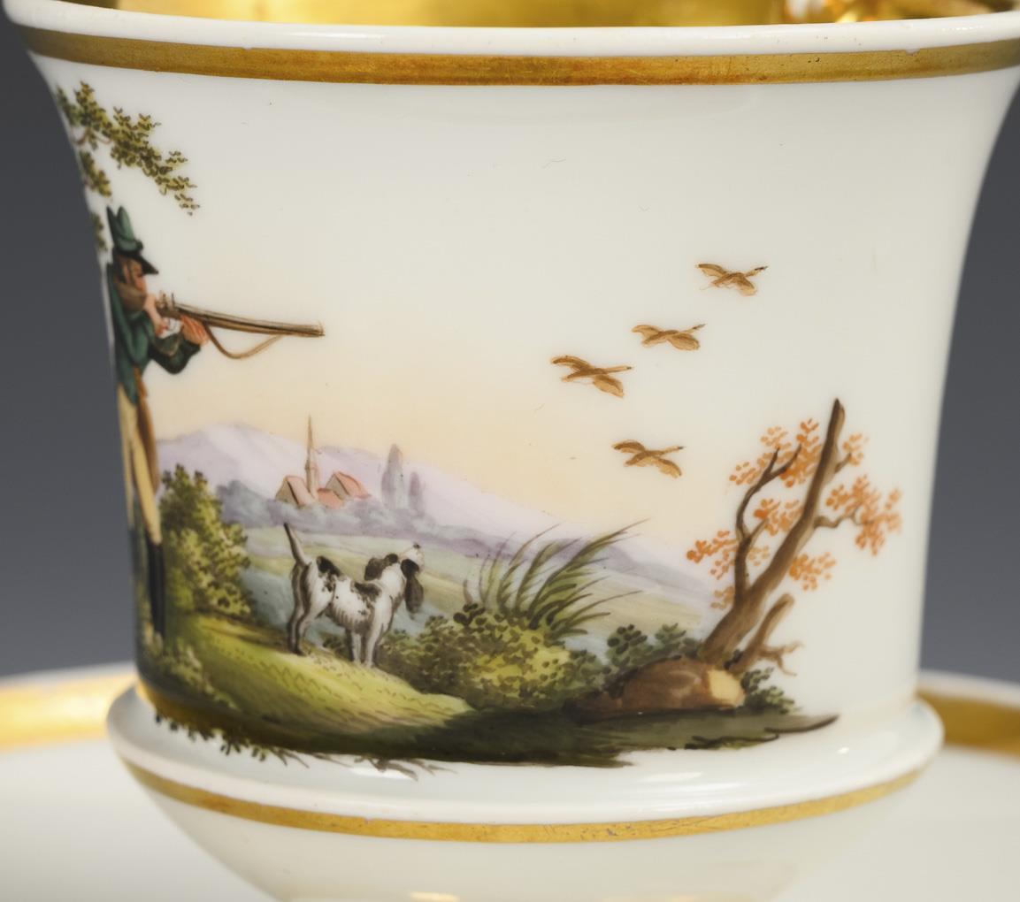 Biedermeier-Tasse mit Jagdmotiv. Meissen.