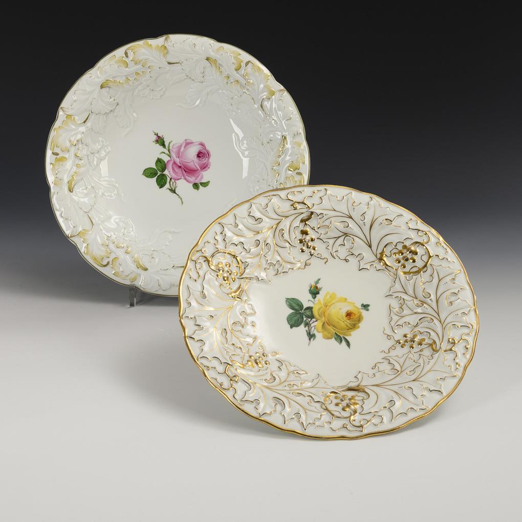 2 Prunkschalen mit Rosenmalerei. Meissen.