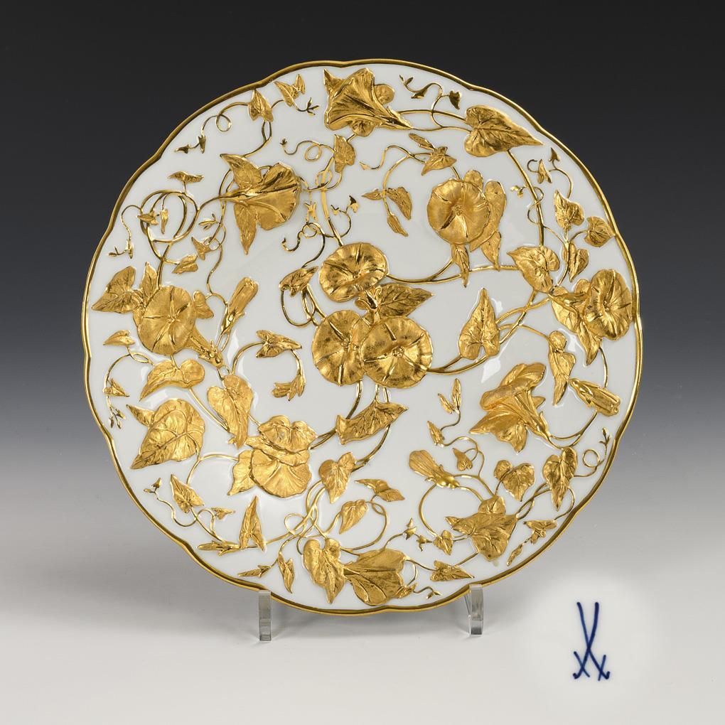 Schale mit goldbronziertem Wickenrelief. Minimaler Goldabrieb.