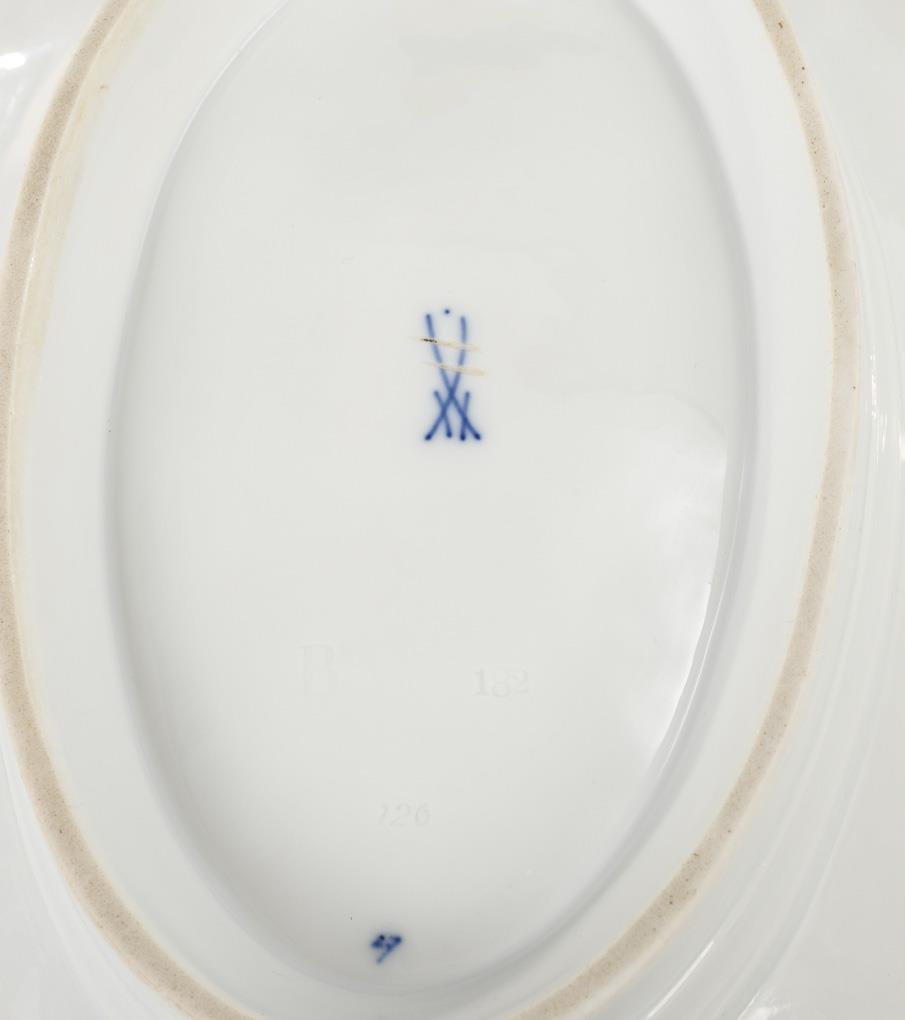 Ovale Schale mit goldstaffiertem und -bronziertem Weinrebenrelief. Gold partiell etwas berieben.