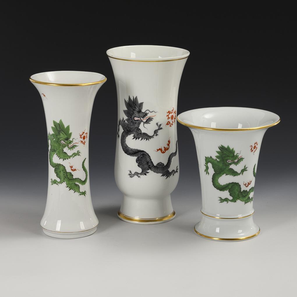 3 Vasen mit Drachenmalerei. Meissen.